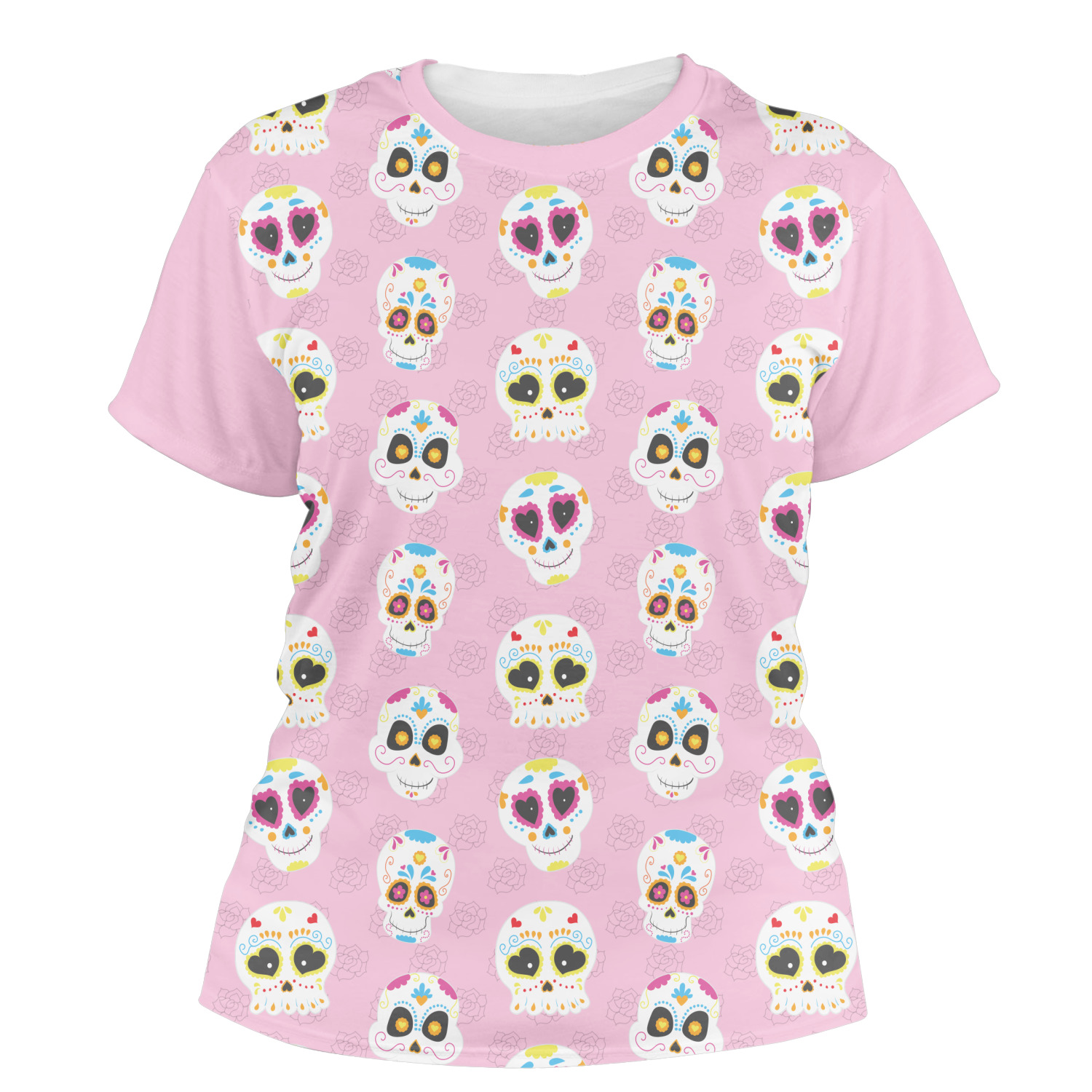 Our womens t-shirts are a lovely jersey knit polyester. They come in 6 different sizes ranging from X-Small to XX-Large. These shirts are your basic comfy crew neck t-shirts that look good on anyone. You are able to personalize the sleeves, front, AND back! Isn't that awesome?! Make everything one color or all different. The choice is yours.