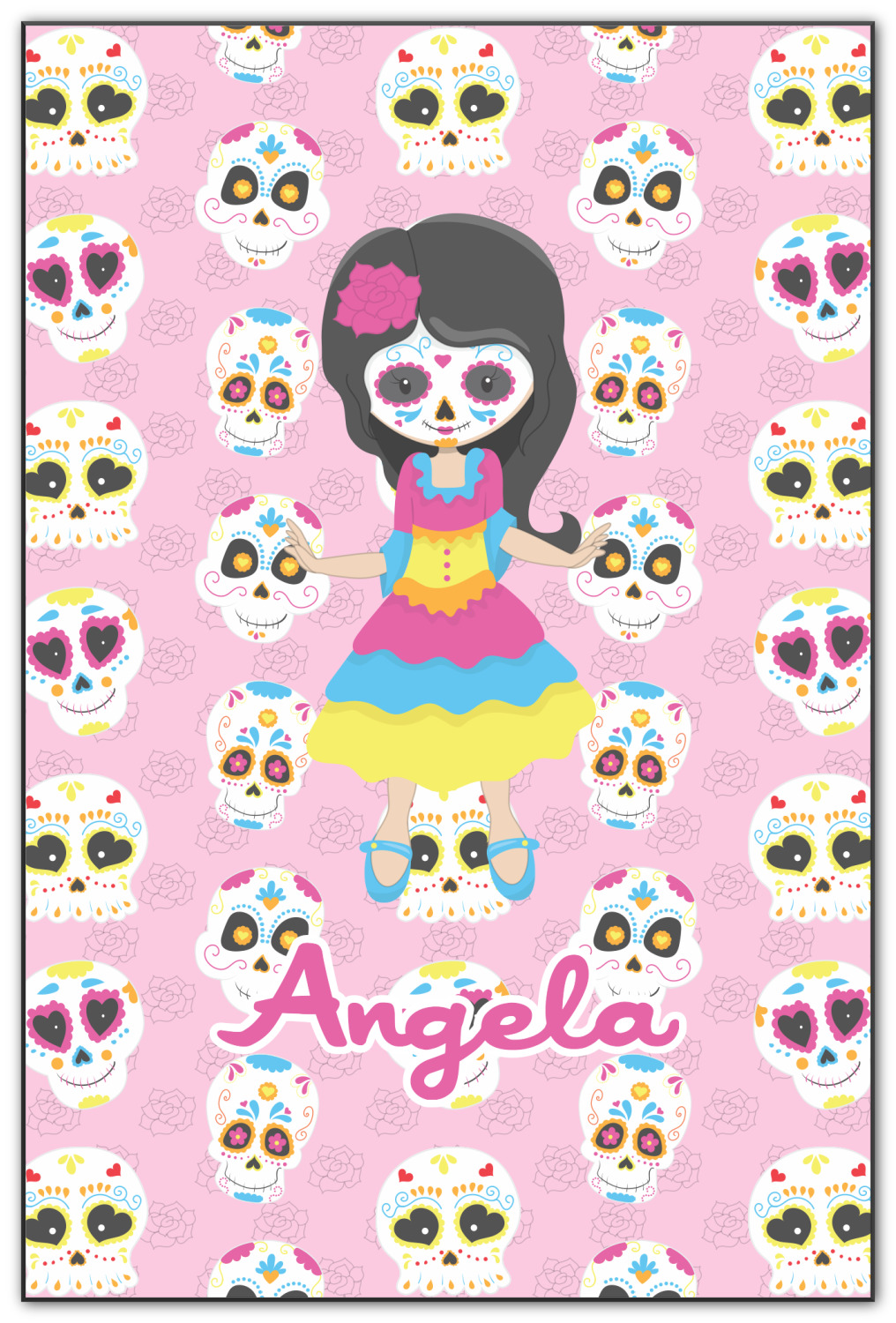 Most sugar skull design are only suitable for adults - not this one! This sugar skulls designs was done especially for kids who love sugar skulls. This is another one of our many layered designs where the background is a coordinating floral pattern; with kid friendly sugar skulls on top. We then topped it off with our girl who has her face painted. For personalization, we added her name to the bottom.