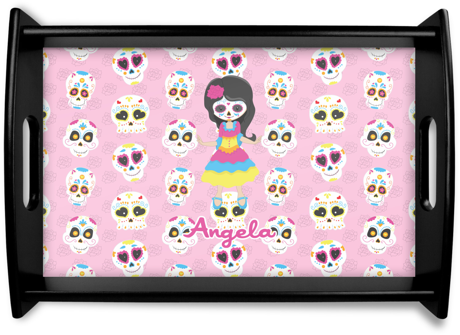 Most sugar skull design are only suitable for adults - not this one! This sugar skulls designs was done especially for kids who love sugar skulls. This is another one of our many layered designs where the background is a coordinating floral pattern; with kid friendly sugar skulls on top. We then topped it off with our girl who has her face painted. For personalization, we added her name to the bottom.