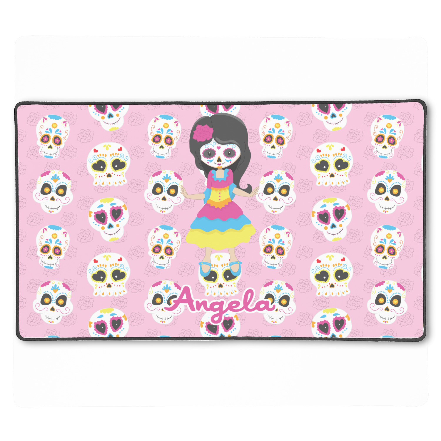 Most sugar skull design are only suitable for adults - not this one! This sugar skulls designs was done especially for kids who love sugar skulls. This is another one of our many layered designs where the background is a coordinating floral pattern; with kid friendly sugar skulls on top. We then topped it off with our girl who has her face painted. For personalization, we added her name to the bottom.