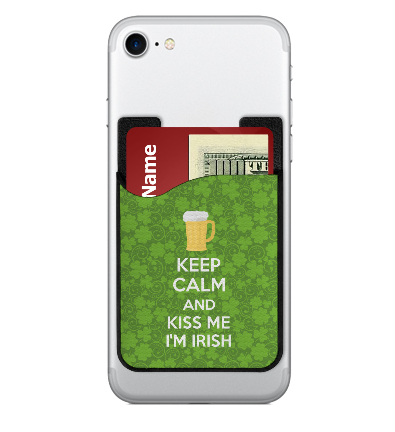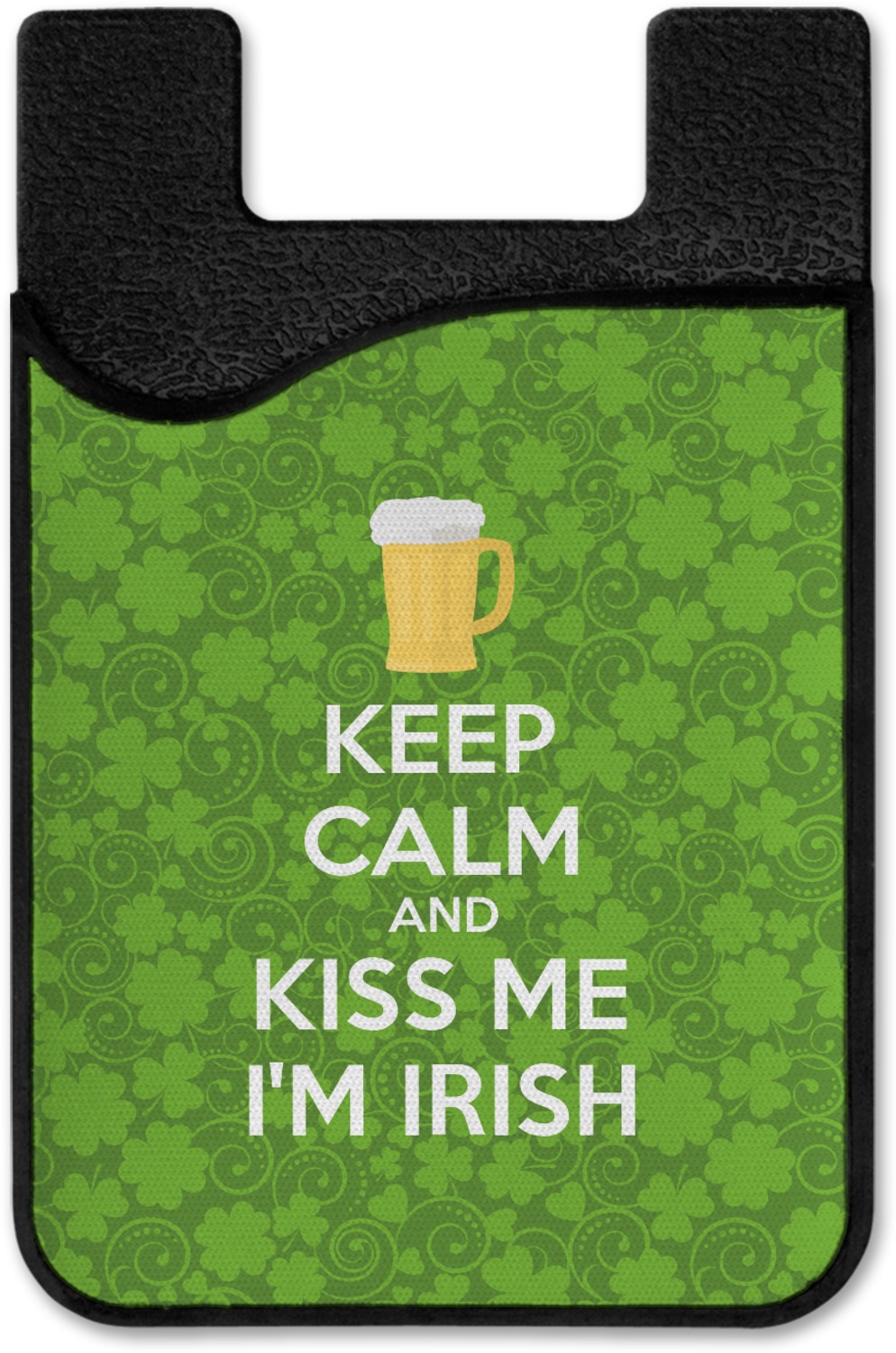 This lucky design is mostly bright green. The background has a lighter green and a darker green making up a background of clovers and swirls. The foreground is a fun phrase that says "Keep calm and kiss me I'm Irish." A fun beer graphic sits above this. You can easily personalize this phrase as well as the graphic above to be whatever you like.