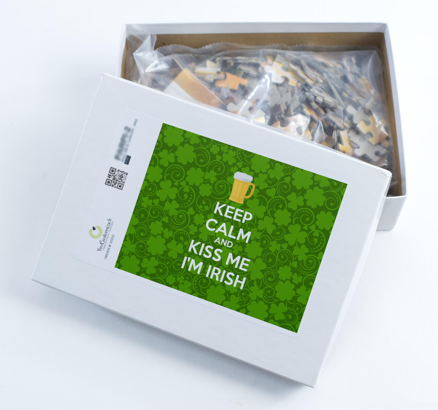 You can also upload your logo or art that you or your kids drew. To create more challenging jigsaw puzzles, you can create a pattern from with your logo or artwork. You can also add other elements such as text or personalization.