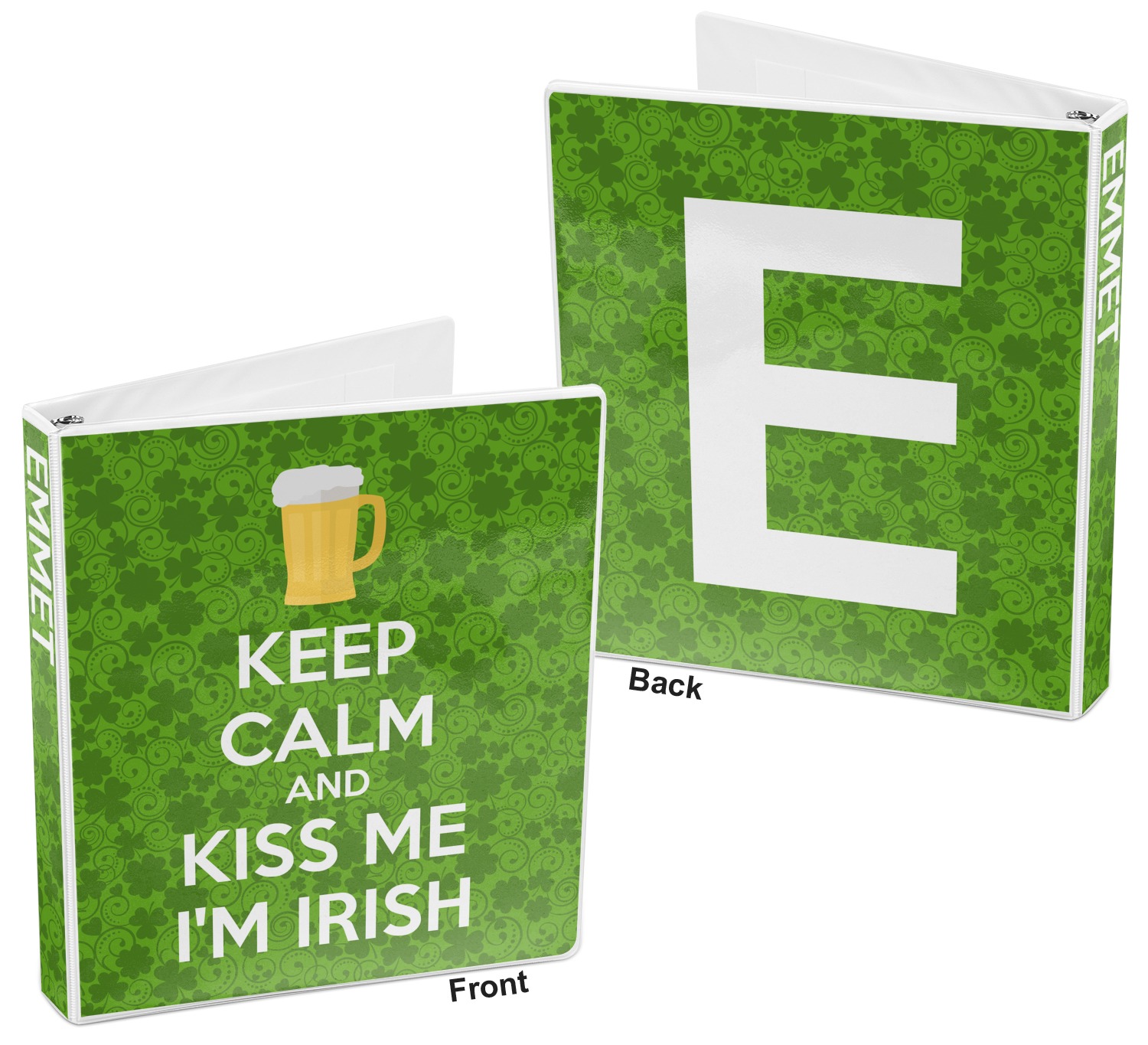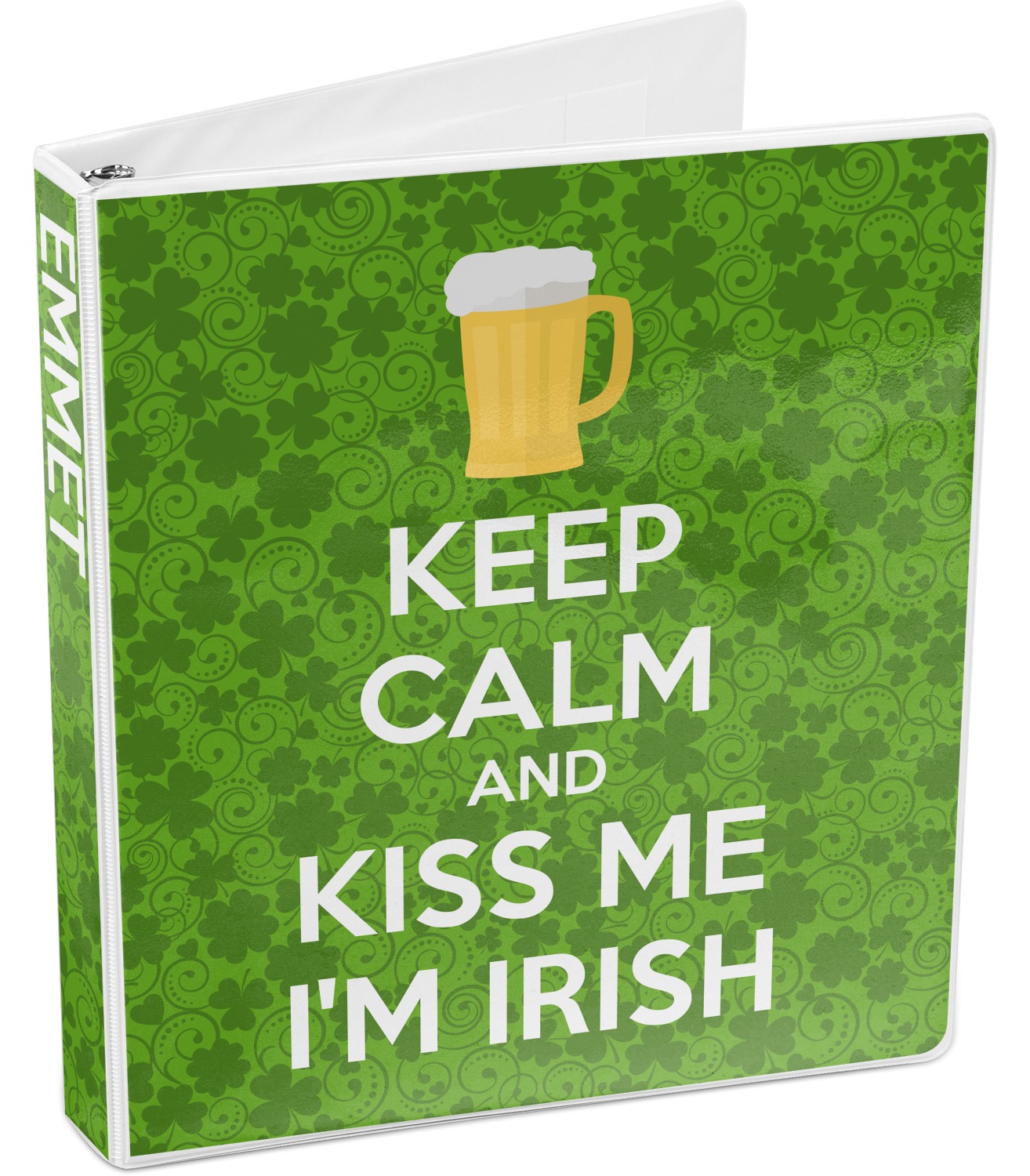 This lucky design is mostly bright green. The background has a lighter green and a darker green making up a background of clovers and swirls. The foreground is a fun phrase that says "Keep calm and kiss me I'm Irish." A fun beer graphic sits above this. You can easily personalize this phrase as well as the graphic above to be whatever you like.