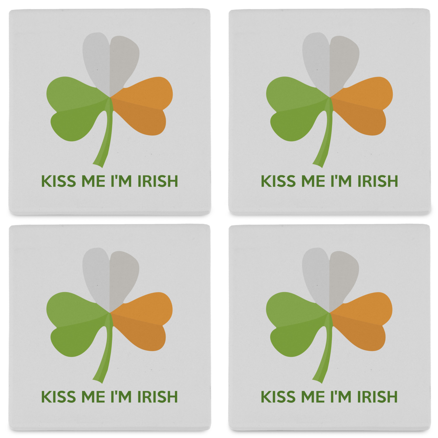 This lucky design is mostly bright green. The background has a lighter green and a darker green making up a background of clovers and swirls. The foreground is a fun phrase that says "Keep calm and kiss me I'm Irish." A fun beer graphic sits above this. You can easily personalize this phrase as well as the graphic above to be whatever you like.