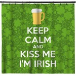This lucky design is mostly bright green. The background has a lighter green and a darker green making up a background of clovers and swirls. The foreground is a fun phrase that says "Keep calm and kiss me I'm Irish." A fun beer graphic sits above this. You can easily personalize this phrase as well as the graphic above to be whatever you like.