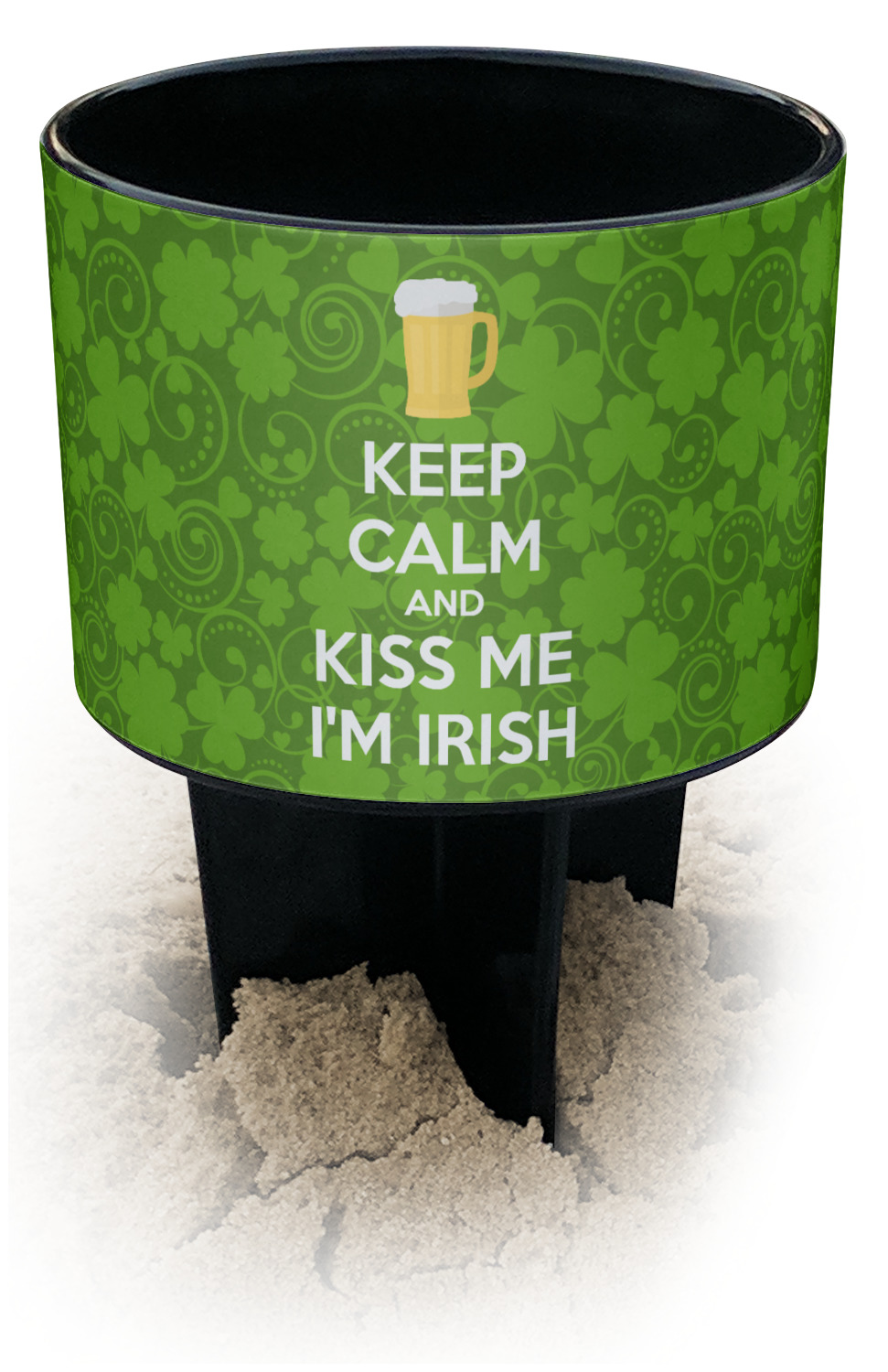 This lucky design is mostly bright green. The background has a lighter green and a darker green making up a background of clovers and swirls. The foreground is a fun phrase that says "Keep calm and kiss me I'm Irish." A fun beer graphic sits above this. You can easily personalize this phrase as well as the graphic above to be whatever you like.