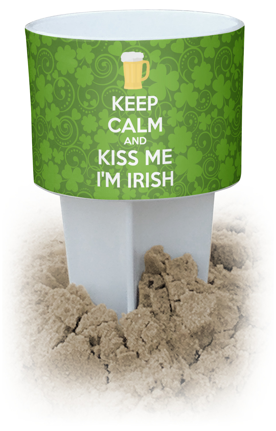 This cup holder has a large stake at its bottom that anchors it to the sand or ground below, while the cup holder rests above the stake. The entire drink holder is made of durable plastic and displays your customization around the cup holder portion. We sell these personalized beach spikers in two different colors: black and white.