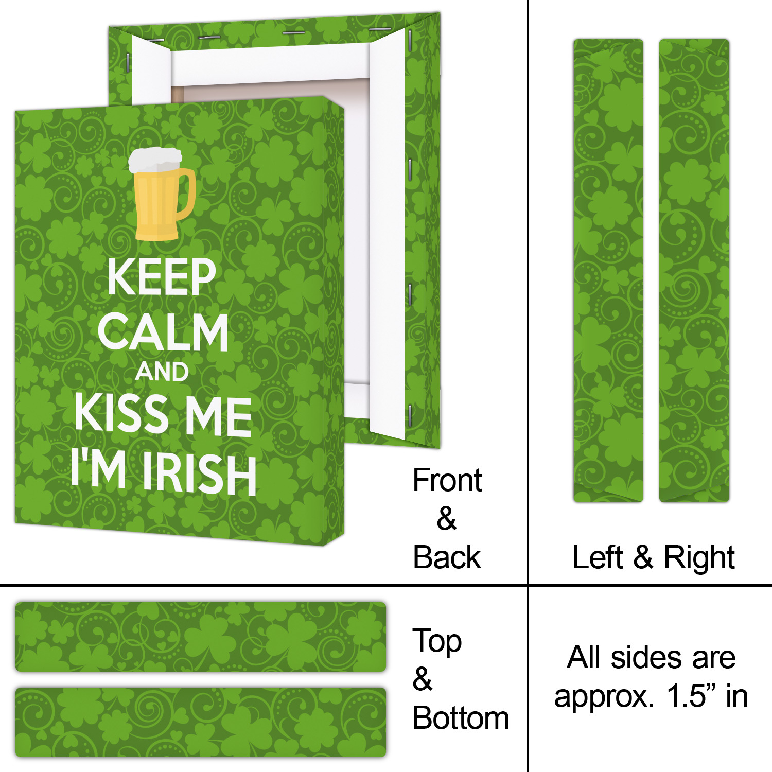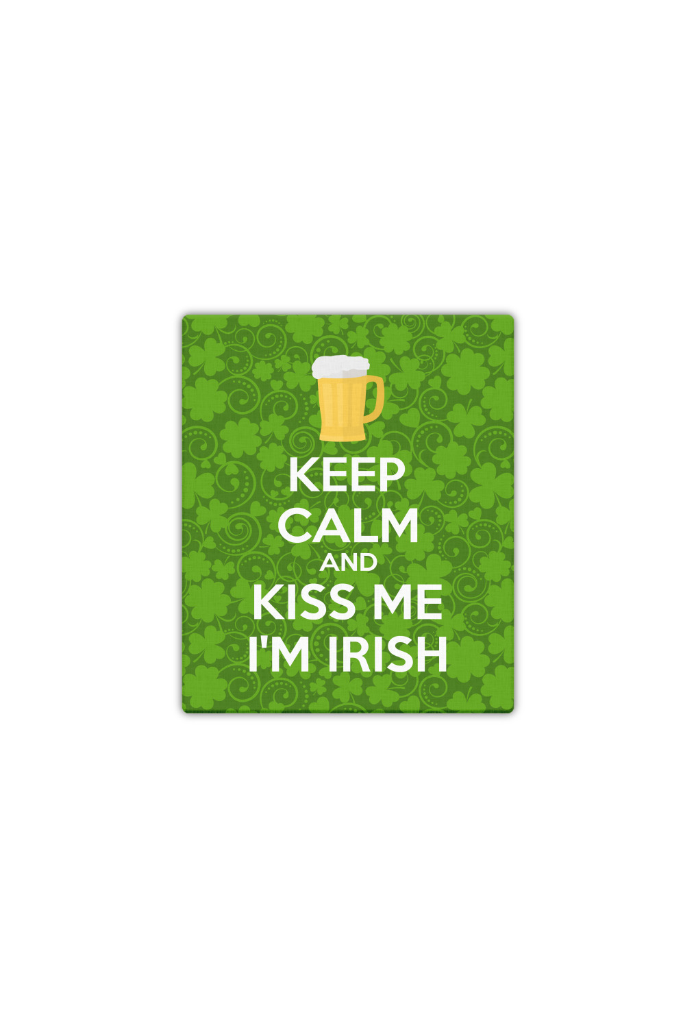 This lucky design is mostly bright green. The background has a lighter green and a darker green making up a background of clovers and swirls. The foreground is a fun phrase that says "Keep calm and kiss me I'm Irish." A fun beer graphic sits above this. You can easily personalize this phrase as well as the graphic above to be whatever you like.