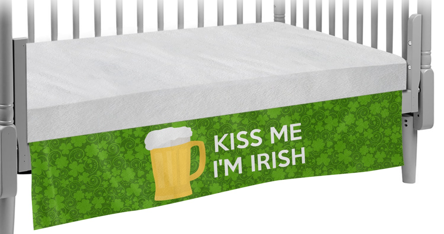 This baby crib skirt is made from two different materials and has split corners for easy placement and removal. The four corners are made from a soft, minky-like material, while the center is made of microfleece. The dual fabric makes this product durable, and still soft-to-the-touch. We provide you with the option of designing each of the four sides to be entirely unique, or to match one another, depending on your creative vision. Your personalization is displayed across the outside of the custom crib skirt, in vibrant colors. When inserted, each side panel drops 15" and is designed to touch the floor at its lowest setting.
