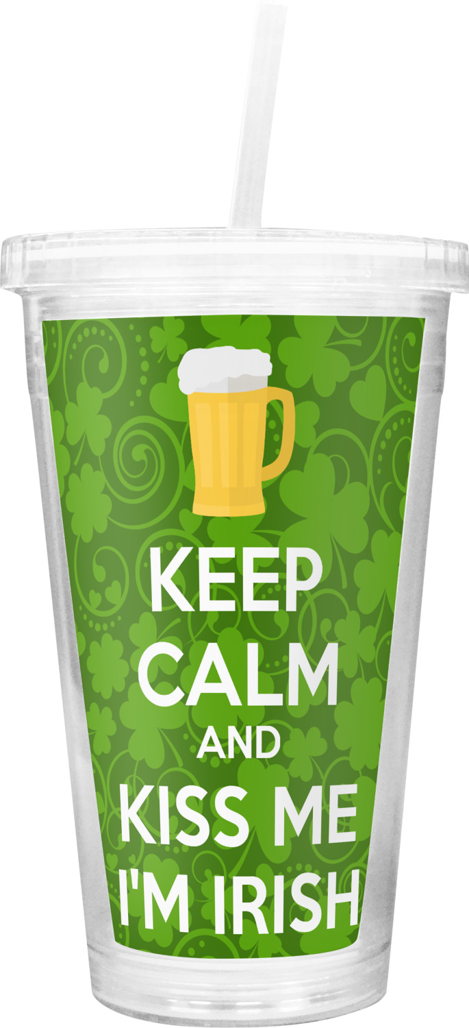 These tumblers are customized for you with a printed insert between the two walls of the cup. The lid screws on tight and helps to keep your drink cold.
