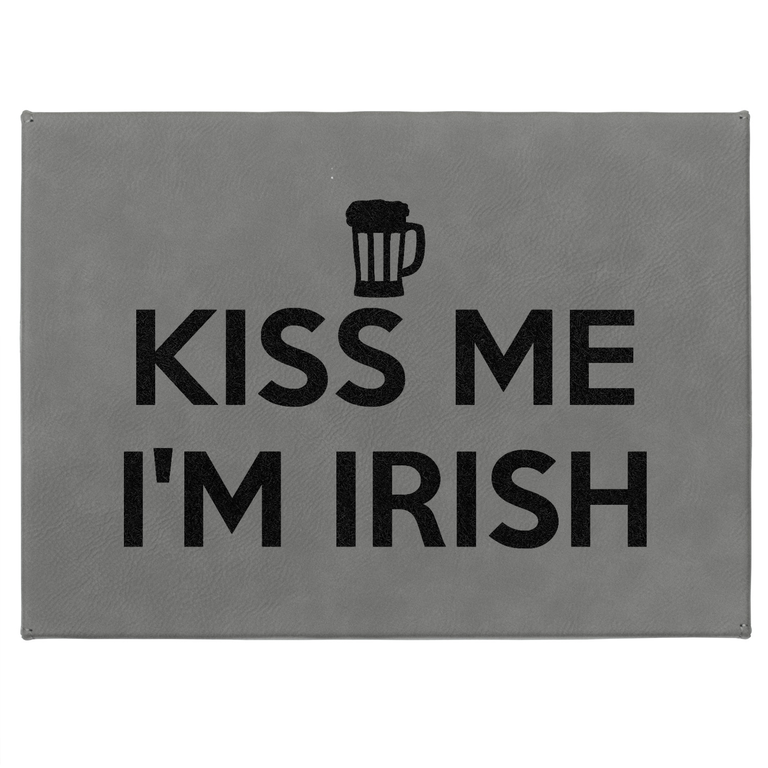 This lucky design is mostly bright green. The background has a lighter green and a darker green making up a background of clovers and swirls. The foreground is a fun phrase that says "Keep calm and kiss me I'm Irish." A fun beer graphic sits above this. You can easily personalize this phrase as well as the graphic above to be whatever you like.