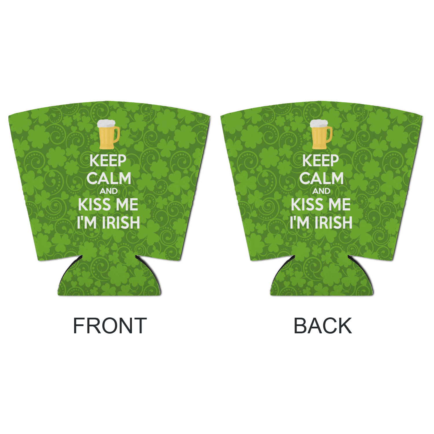 This lucky design is mostly bright green. The background has a lighter green and a darker green making up a background of clovers and swirls. The foreground is a fun phrase that says "Keep calm and kiss me I'm Irish." A fun beer graphic sits above this. You can easily personalize this phrase as well as the graphic above to be whatever you like.