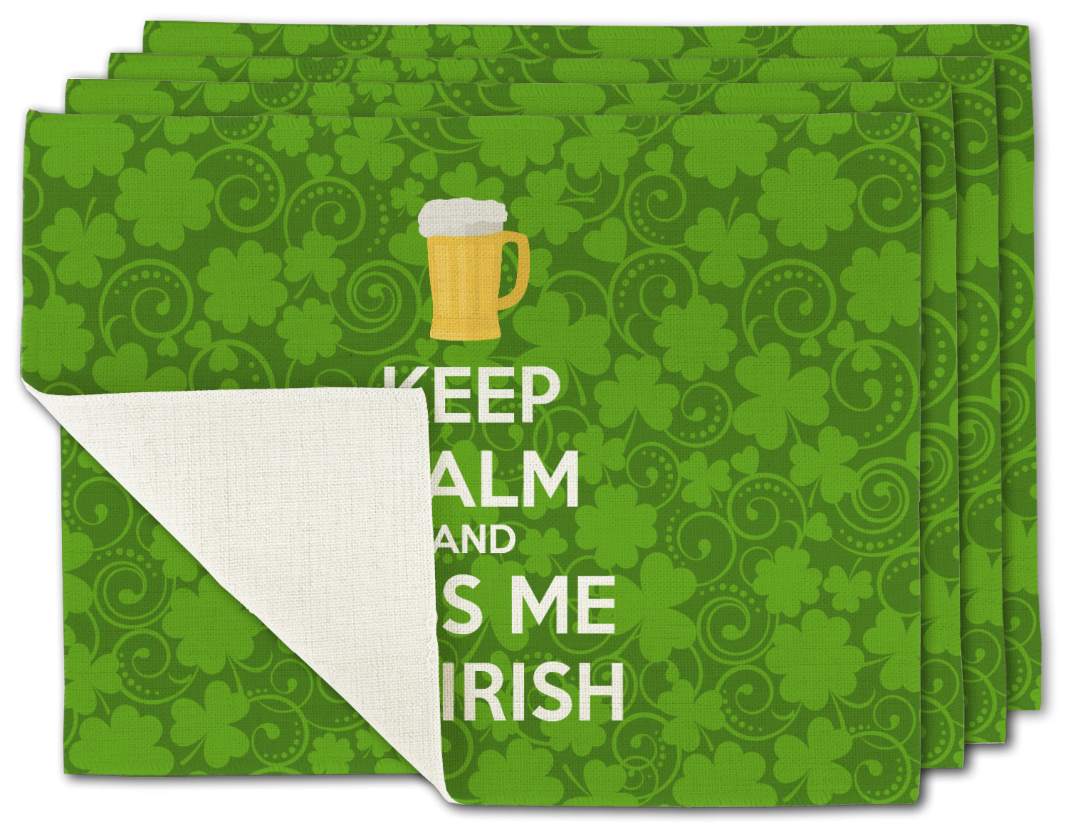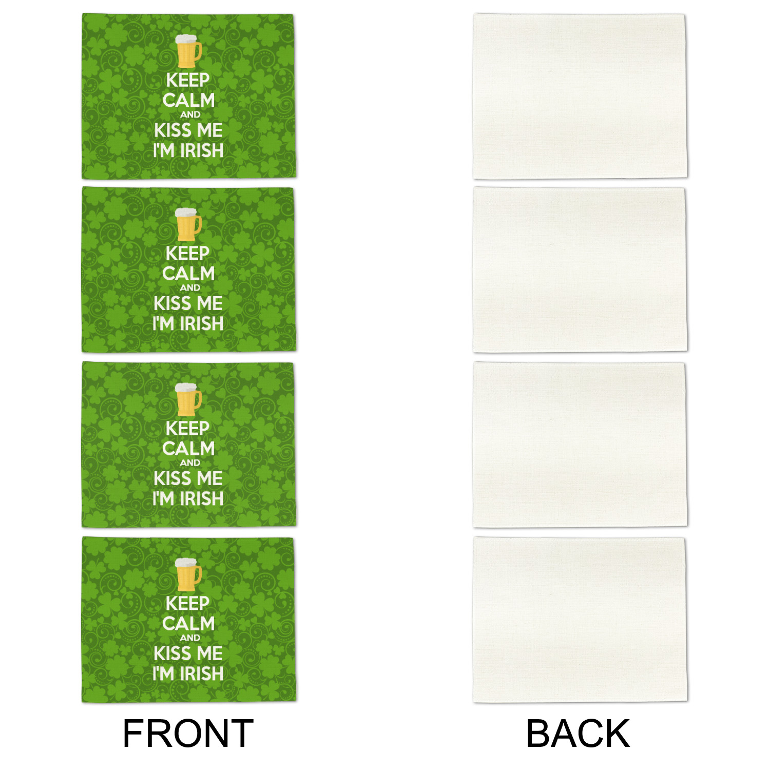 This lucky design is mostly bright green. The background has a lighter green and a darker green making up a background of clovers and swirls. The foreground is a fun phrase that says "Keep calm and kiss me I'm Irish." A fun beer graphic sits above this. You can easily personalize this phrase as well as the graphic above to be whatever you like.