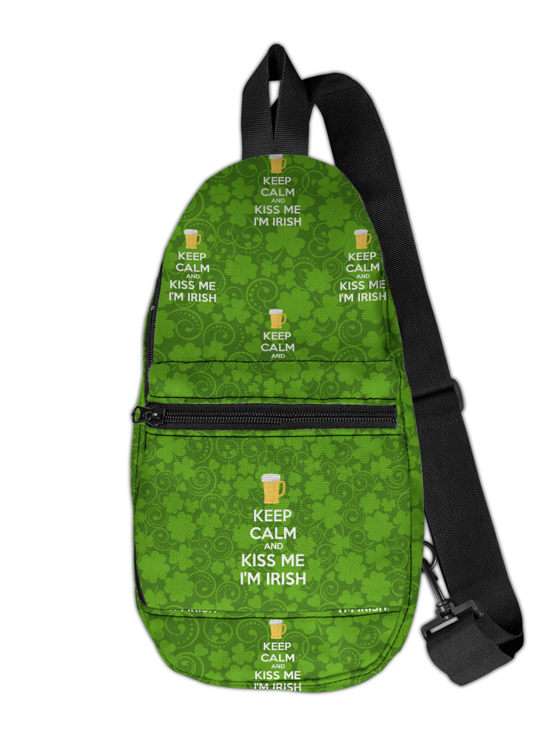 This lucky design is mostly bright green. The background has a lighter green and a darker green making up a background of clovers and swirls. The foreground is a fun phrase that says "Keep calm and kiss me I'm Irish." A fun beer graphic sits above this. You can easily personalize this phrase as well as the graphic above to be whatever you like.