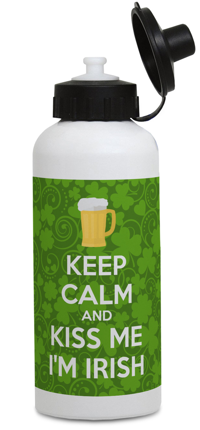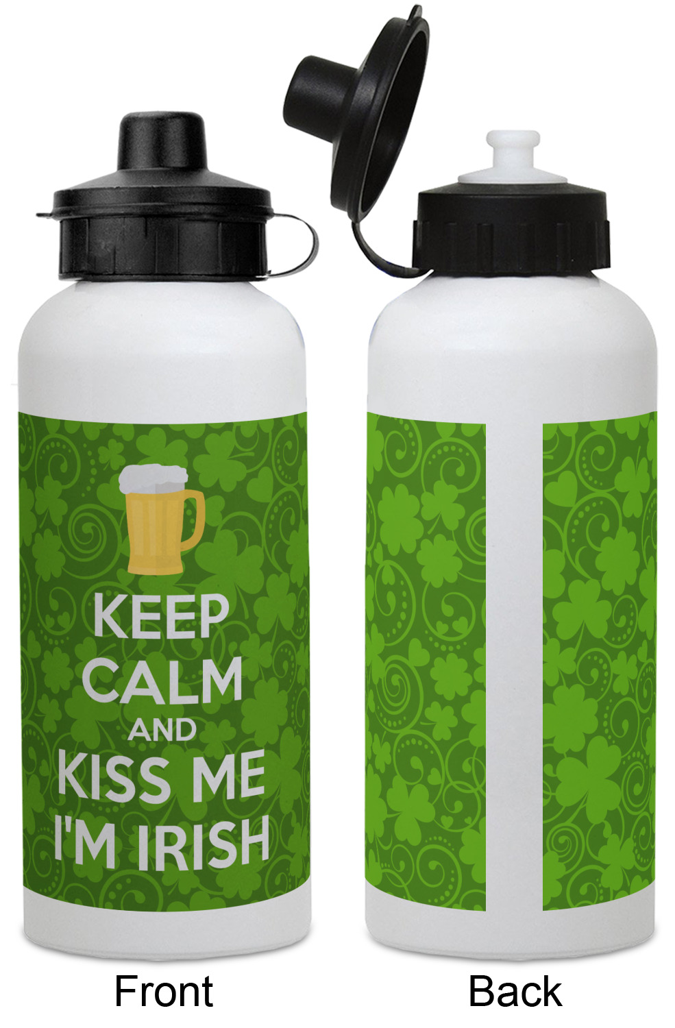 This lucky design is mostly bright green. The background has a lighter green and a darker green making up a background of clovers and swirls. The foreground is a fun phrase that says "Keep calm and kiss me I'm Irish." A fun beer graphic sits above this. You can easily personalize this phrase as well as the graphic above to be whatever you like.