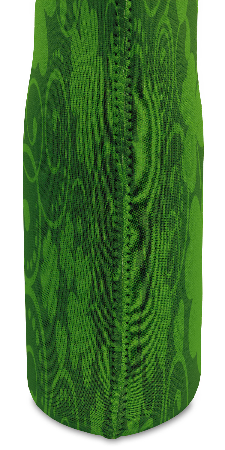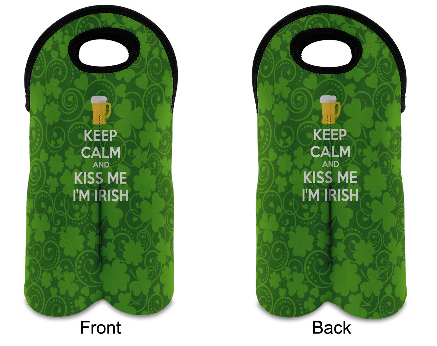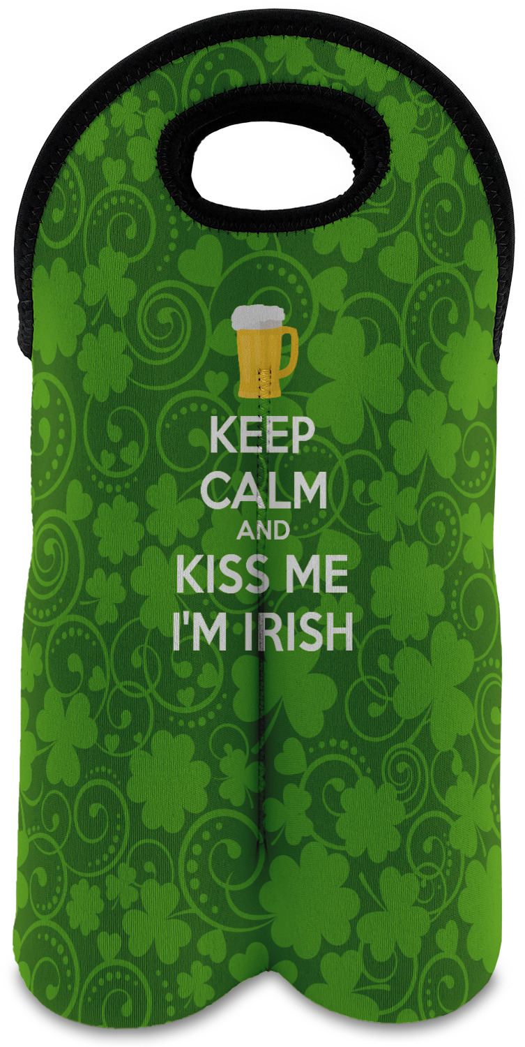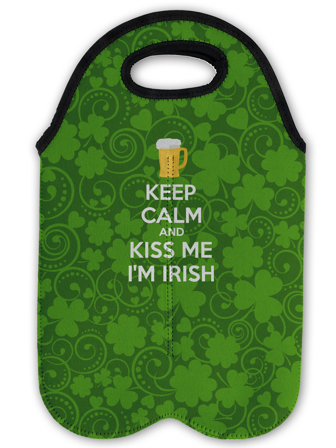 This lucky design is mostly bright green. The background has a lighter green and a darker green making up a background of clovers and swirls. The foreground is a fun phrase that says "Keep calm and kiss me I'm Irish." A fun beer graphic sits above this. You can easily personalize this phrase as well as the graphic above to be whatever you like.