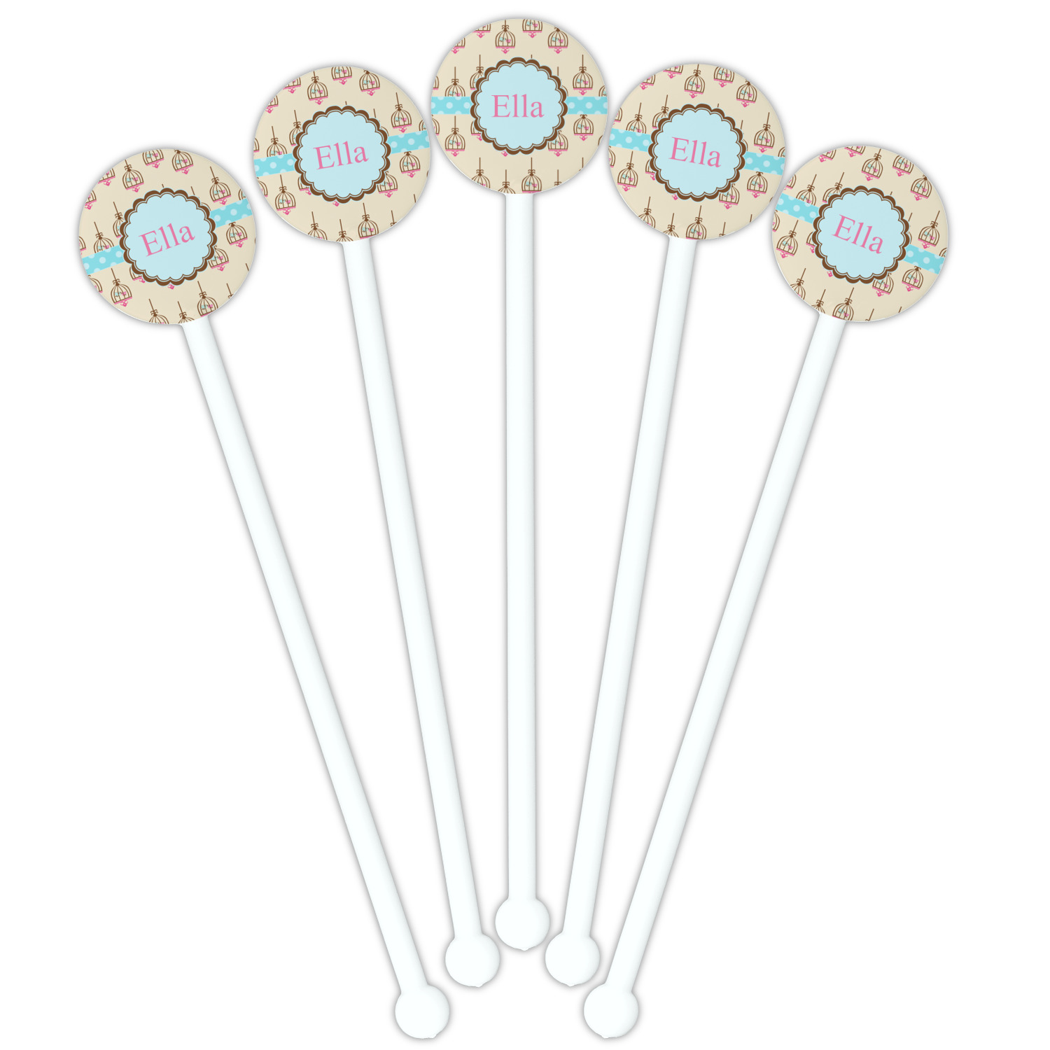 Birdcage Designs for 5.5" Round Plastic Stir Sticks - White - Double-Sided