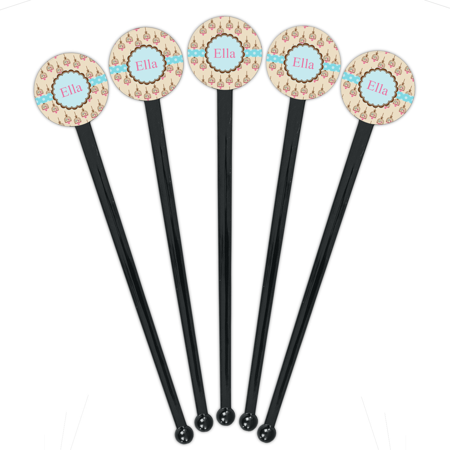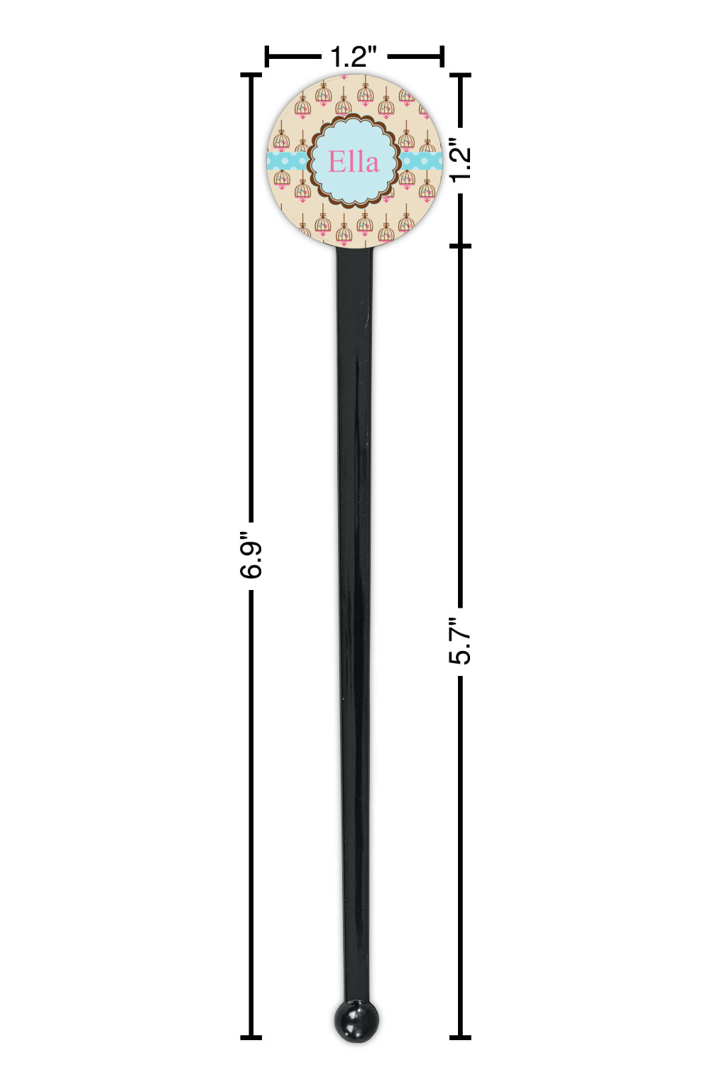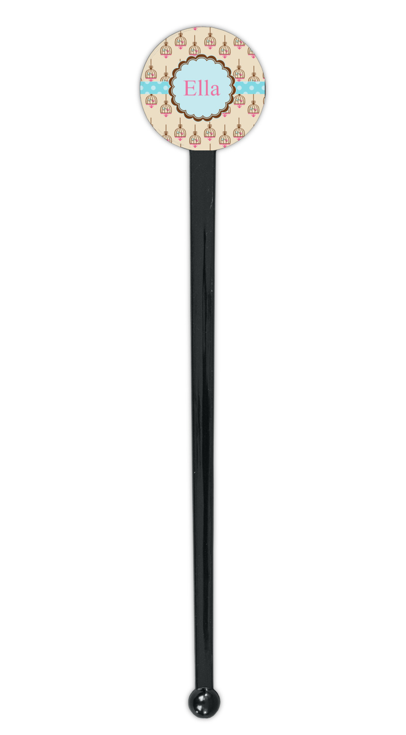 Birdcage Designs for 7" Round Plastic Stir Sticks - Black - Single-Sided