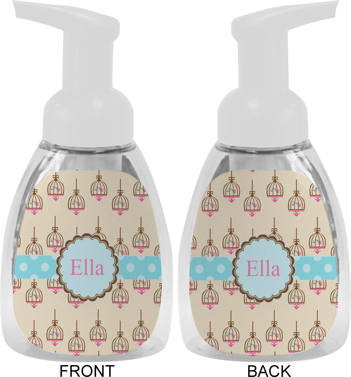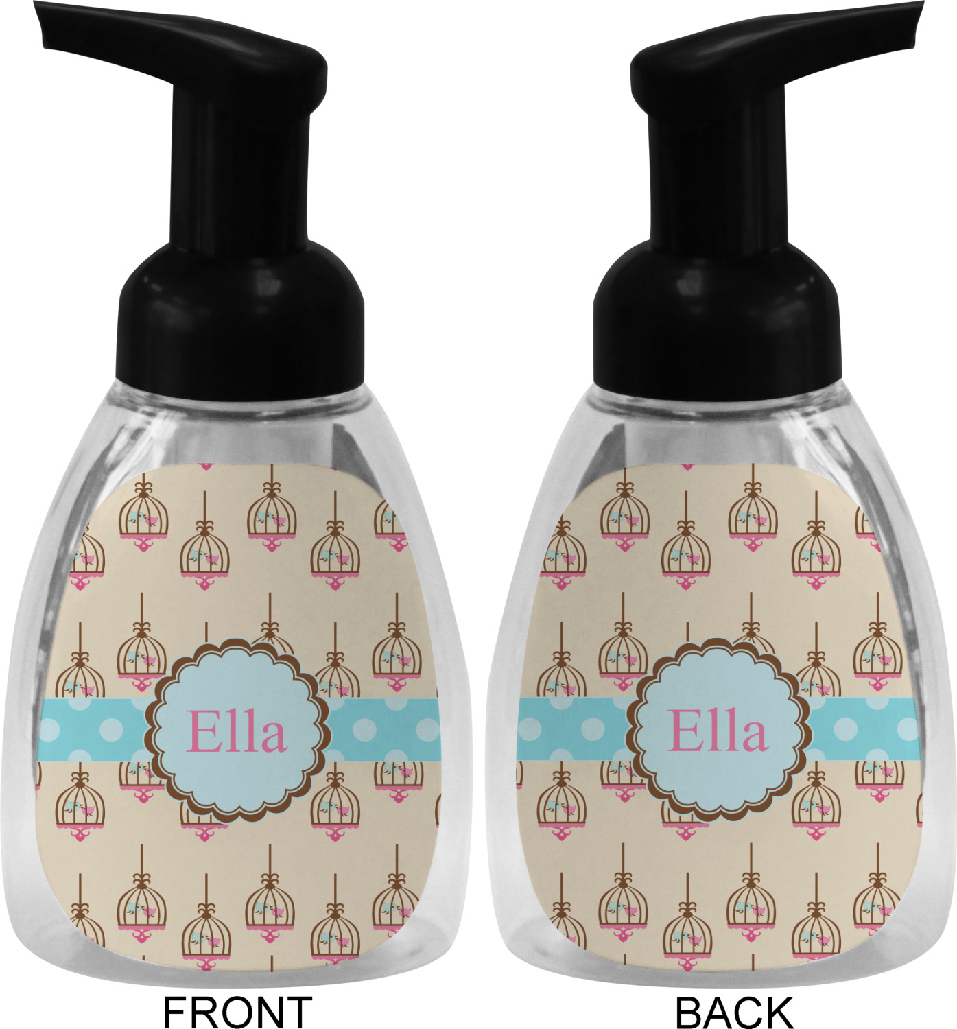 This soap dispenser is made of a robust plastic and has a clear base. The included soap pump is available in black or white color. This dispenser is 6.5 inches tall, 3 inches wide, and 2 inches deep. We display your customized designs on the front and back sides of these foaming hand soap dispensers.
