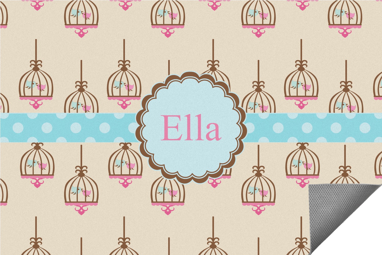 Blue bird and pink bird flying in the cage, k-i-s-s-i-n-g!! This whimsical birdcage design features two little birds kissing in their cage. A neutral beige background makes this pattern so easy to use when decorating.