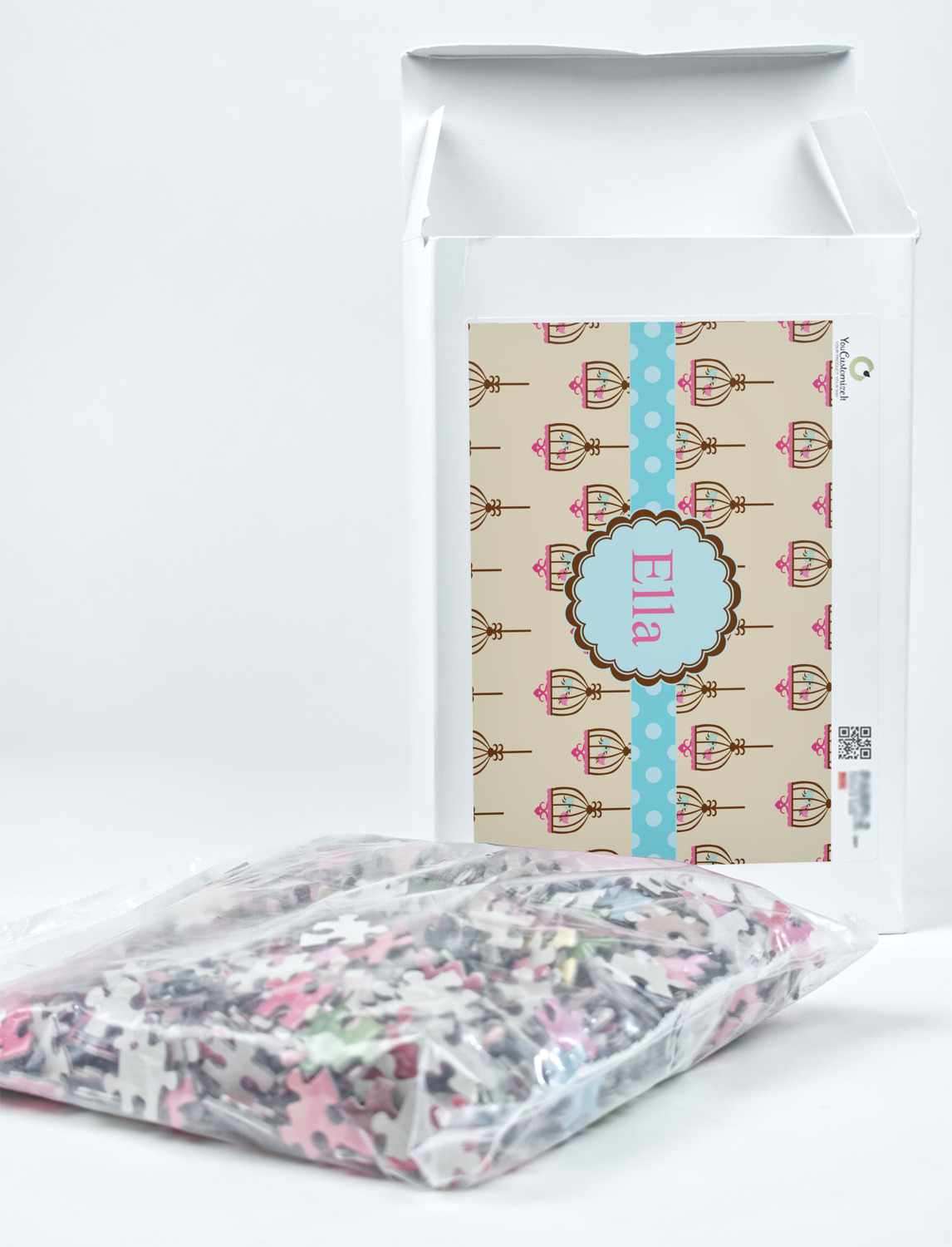 You can also upload your logo or art that you or your kids drew. To create more challenging jigsaw puzzles, you can create a pattern from with your logo or artwork. You can also add other elements such as text or personalization.