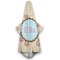 A band of light blue polka dots spans across the design and a blue scalloped label with brown trim houses the personalization of your choice.