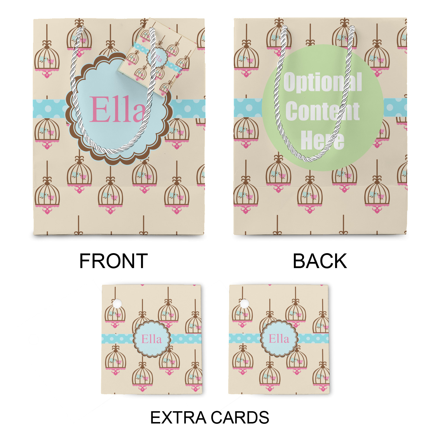 The bottom of the bag has a cardstock base to make the base more sturdy to hold up to all of your gifts. Each bag comes with one card on the rope handle and at least 1 extra card.