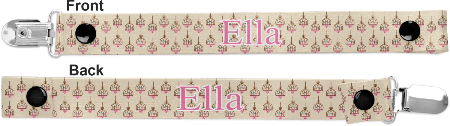 This personalized pacifier clip is the ideal size and measures at approximately 7.5 inches in length, when either end is snapped closed. On one end, you'll find a snap button. This button of your baby's pacifier holder is what can be attached to their pacifier to hold is securely in place. Simply open the snap, slip it through the pacifier opening, and snap it back into place. On the opposite end of this baby pacifier holder, you'll find a metal clip that can secure to a baby's collar or sleeve. This clip ensures that the strap stays in place, and that your baby's pacifier is always on hand.