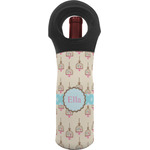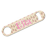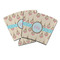 A band of light blue polka dots spans across the design and a blue scalloped label with brown trim houses the personalization of your choice.