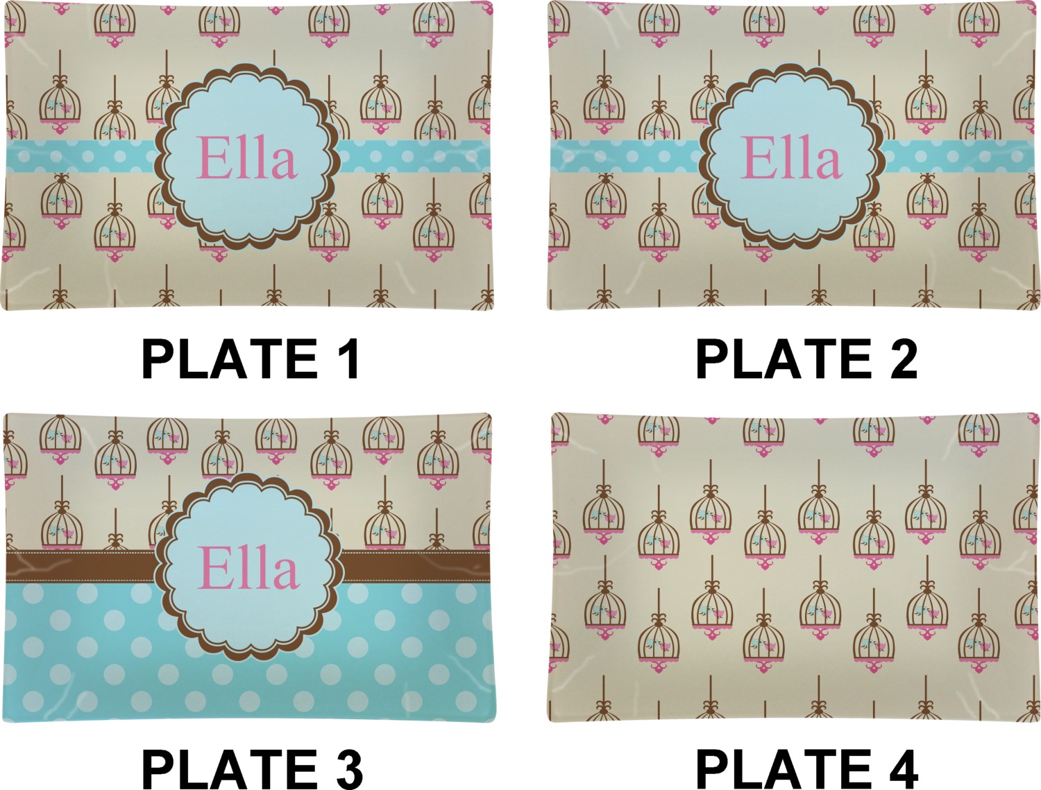 Birdcage Designs for Glass Rectangular Lunch / Dinner Plates - Set of 4