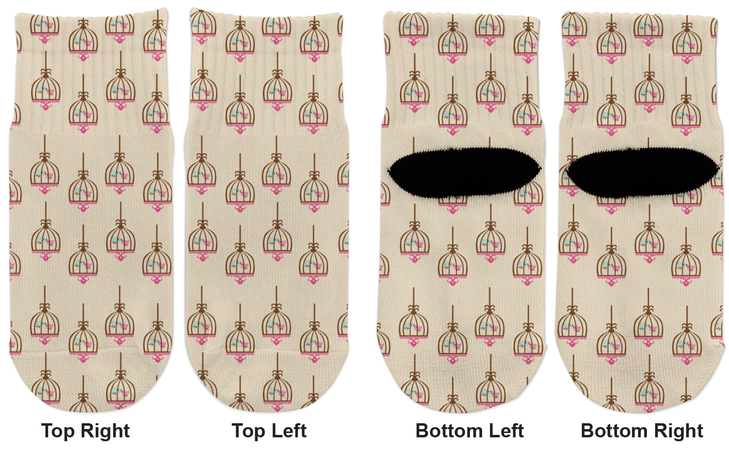 Blue bird and pink bird flying in the cage, k-i-s-s-i-n-g!! This whimsical birdcage design features two little birds kissing in their cage. A neutral beige background makes this pattern so easy to use when decorating.