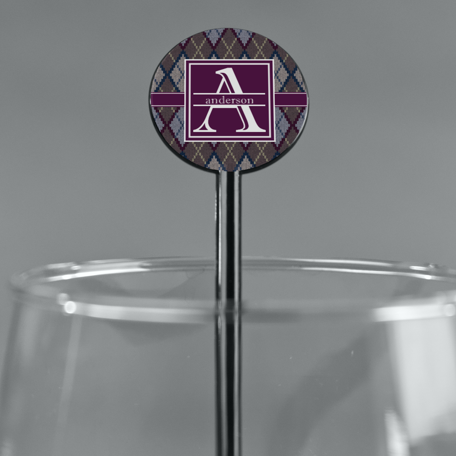 Add a cozy touch of a knit sweater to anything with our Knit Argyle design. The primary color of the design is gray with stitches of dark violet, dark blue, and cream. The design also includes a ribbon and label shown in dark violet.