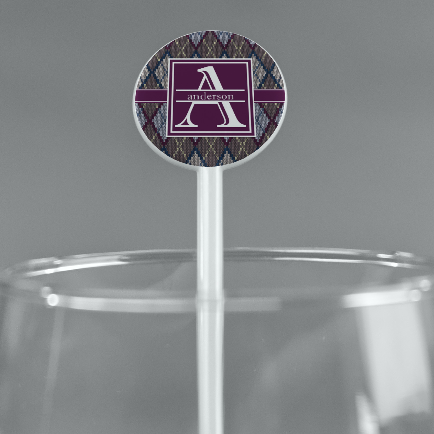 Add a cozy touch of a knit sweater to anything with our Knit Argyle design. The primary color of the design is gray with stitches of dark violet, dark blue, and cream. The design also includes a ribbon and label shown in dark violet.