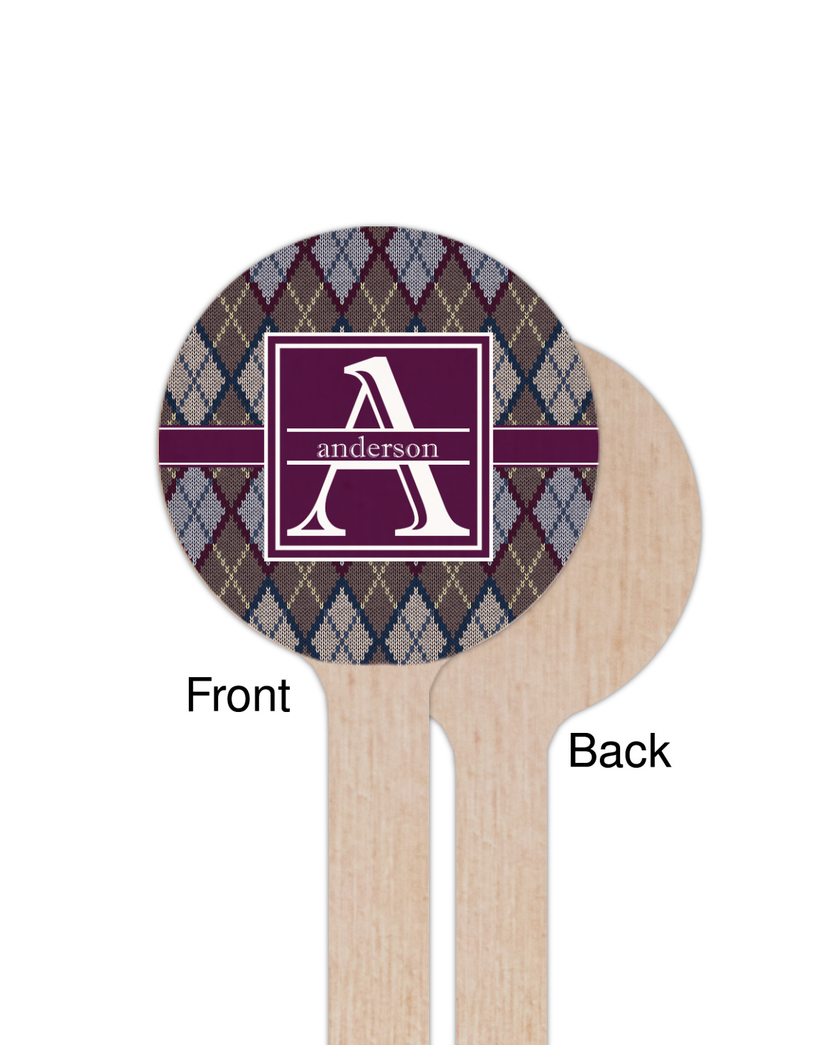 Add a cozy touch of a knit sweater to anything with our Knit Argyle design. The primary color of the design is gray with stitches of dark violet, dark blue, and cream. The design also includes a ribbon and label shown in dark violet.