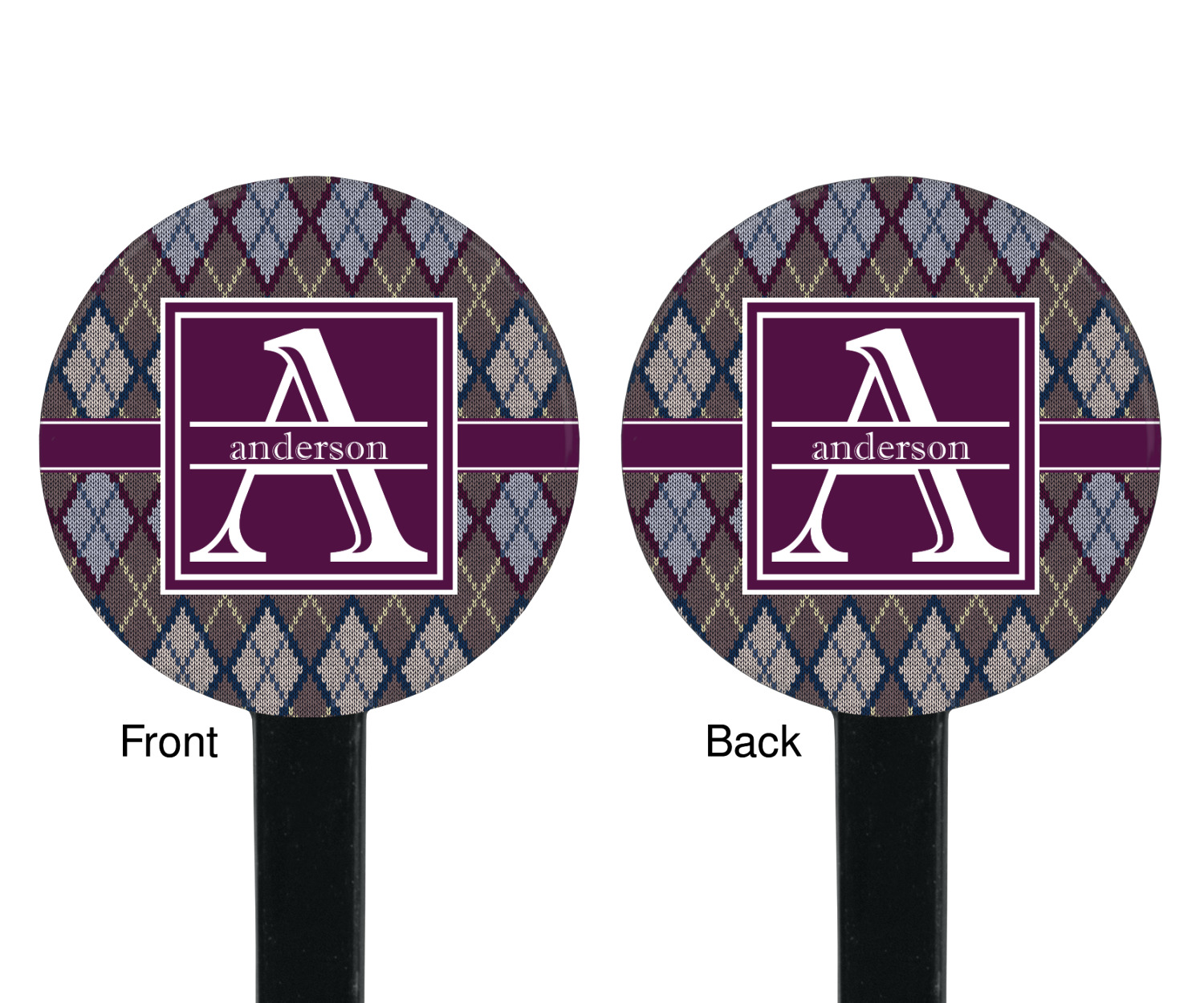 Add a cozy touch of a knit sweater to anything with our Knit Argyle design. The primary color of the design is gray with stitches of dark violet, dark blue, and cream. The design also includes a ribbon and label shown in dark violet.
