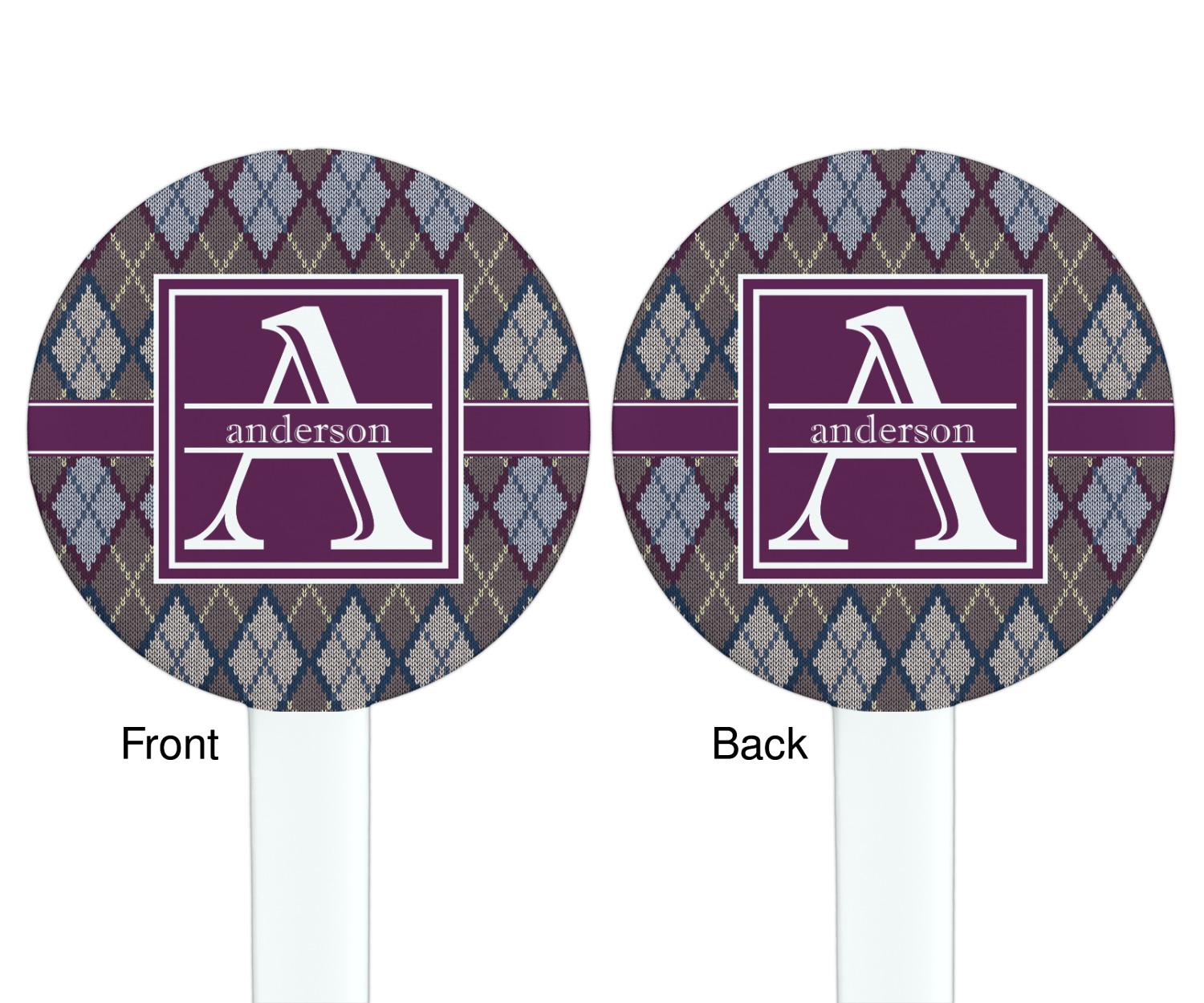 Add a cozy touch of a knit sweater to anything with our Knit Argyle design. The primary color of the design is gray with stitches of dark violet, dark blue, and cream. The design also includes a ribbon and label shown in dark violet.