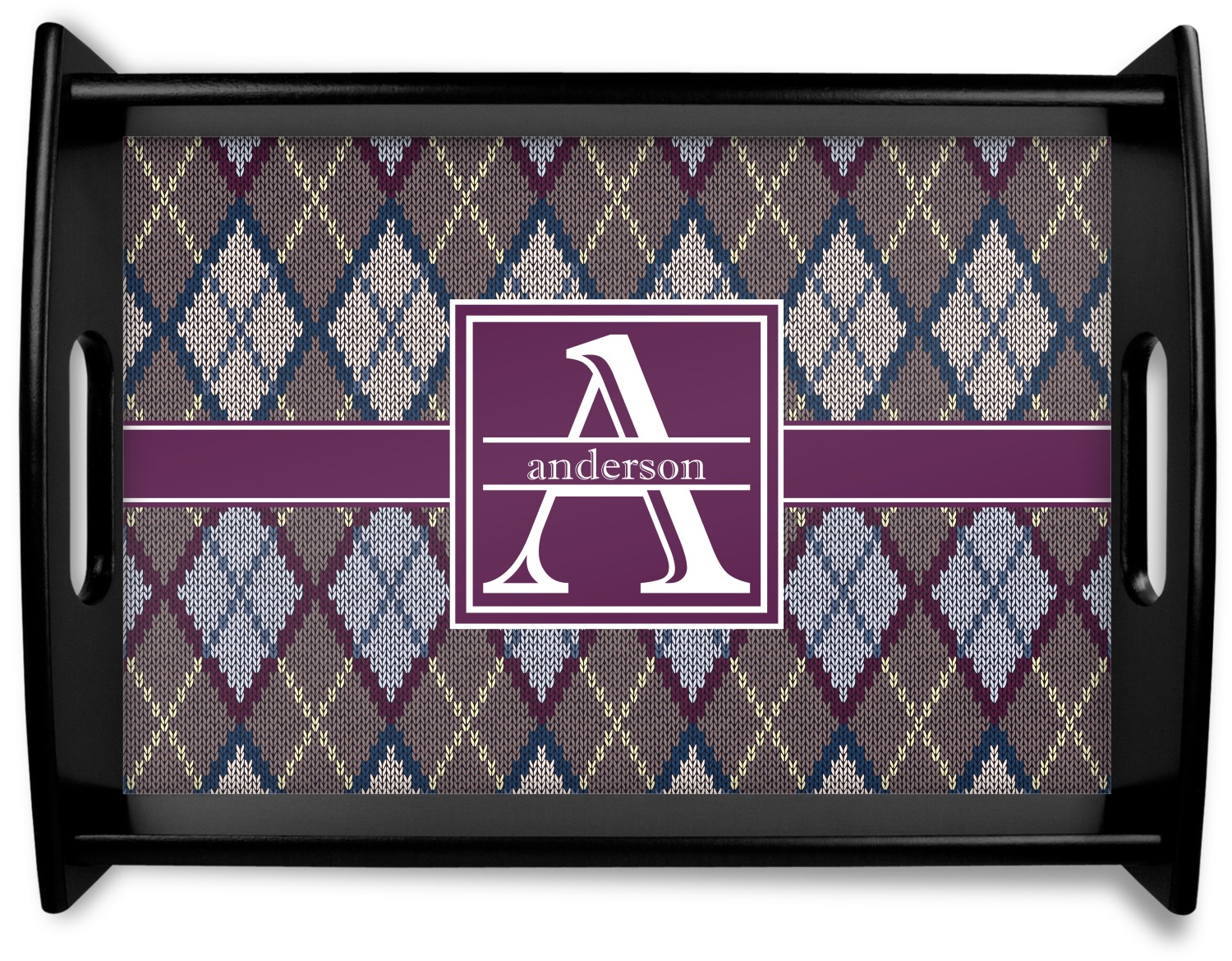 This serving tray with handles features square edges and two rounded sides, creating a very modern look. Each side is fabricated from a beautifully cut, natural wood. The bottom of the interior of the tray displays your customized design in bright, vibrant color. The tray is sold in both a black color and a natural wood look. Each variation of the wood serving tray has two sizes: Small, which is 14" x 10" x 2.25", and Large, which is 19.5" x 13.5" x 2.75".