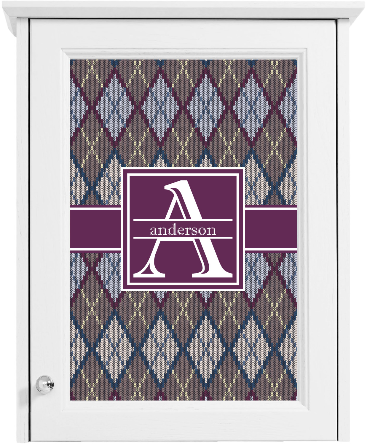 Add a cozy touch of a knit sweater to anything with our Knit Argyle design. The primary color of the design is gray with stitches of dark violet, dark blue, and cream. The design also includes a ribbon and label shown in dark violet.