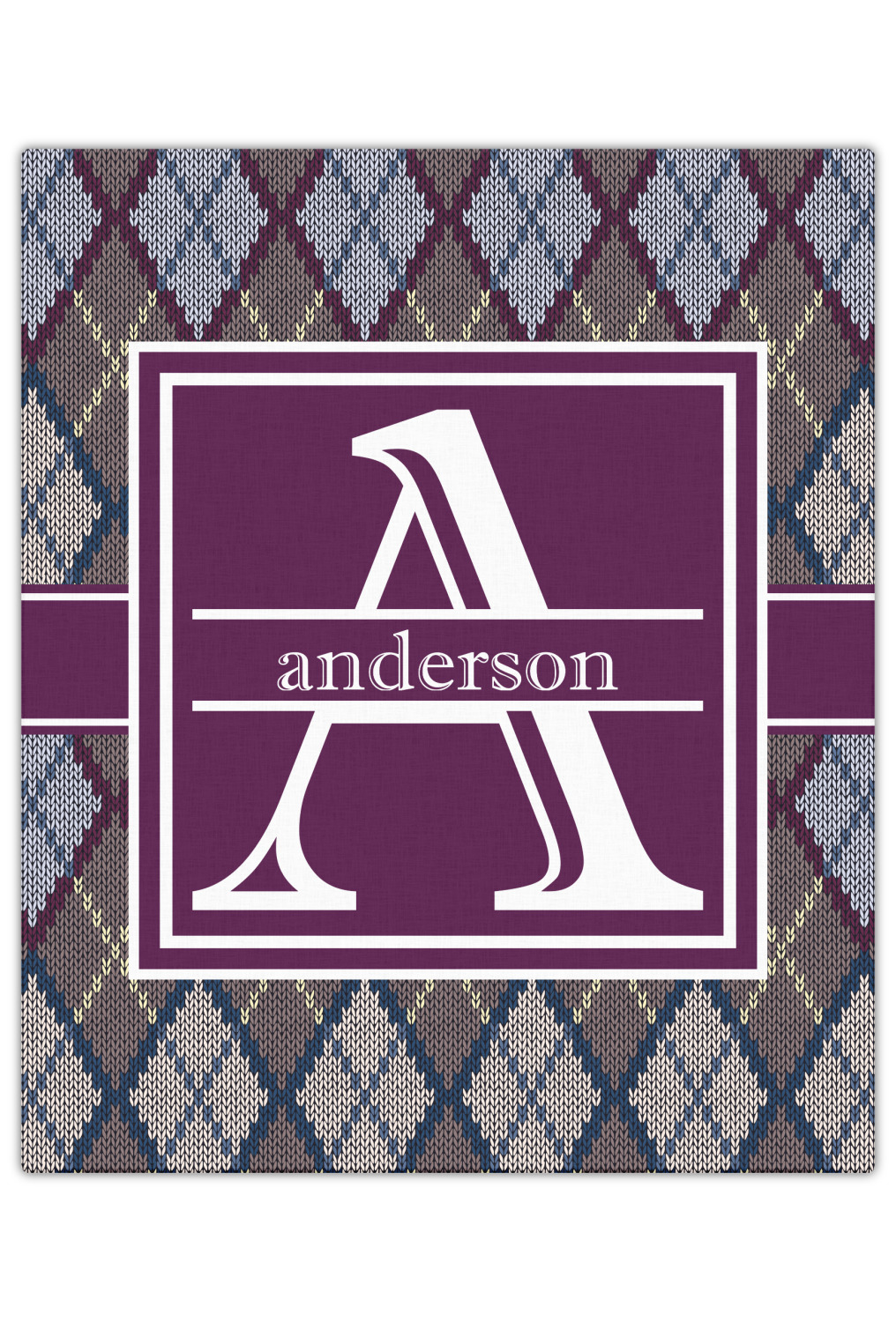 Add a cozy touch of a knit sweater to anything with our Knit Argyle design. The primary color of the design is gray with stitches of dark violet, dark blue, and cream. The design also includes a ribbon and label shown in dark violet.
