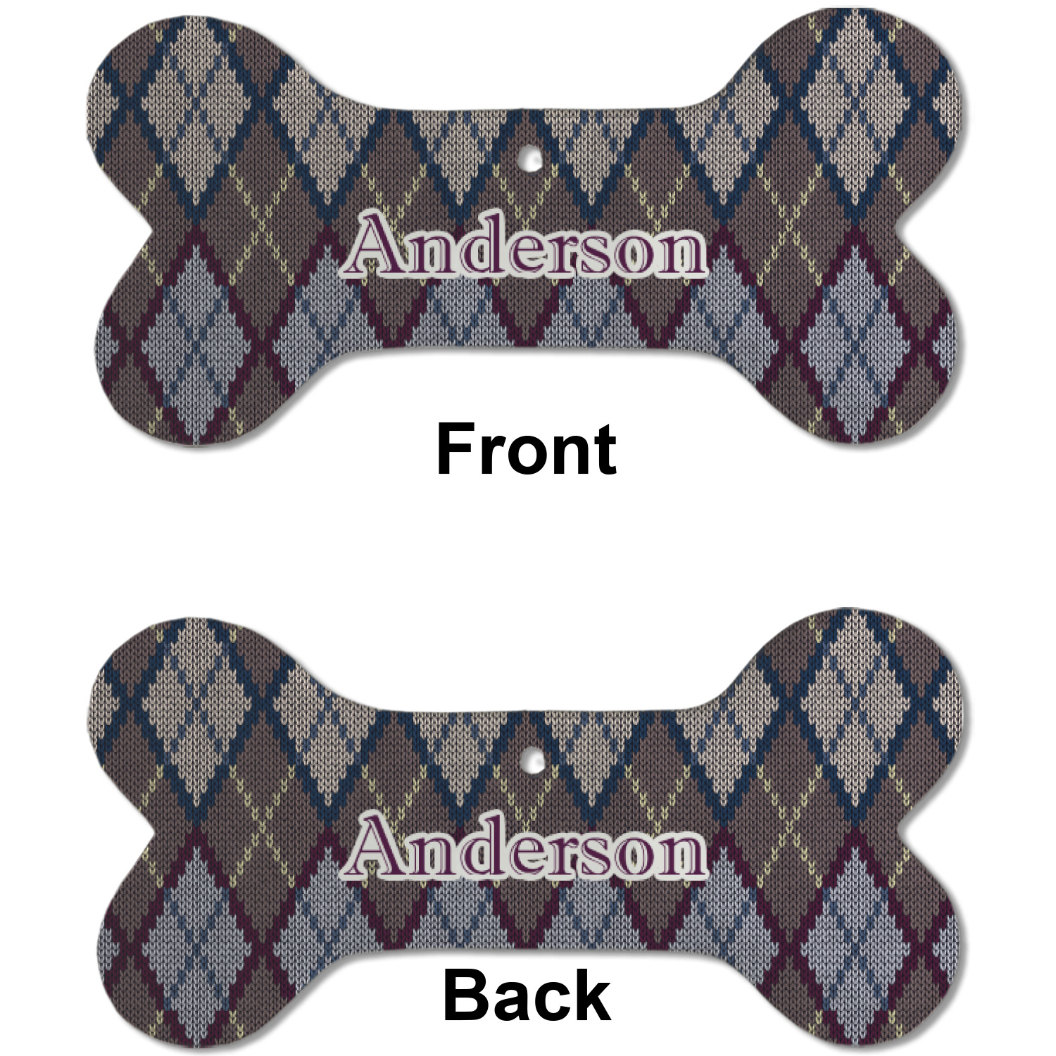 Add a cozy touch of a knit sweater to anything with our Knit Argyle design. The primary color of the design is gray with stitches of dark violet, dark blue, and cream. The design also includes a ribbon and label shown in dark violet.