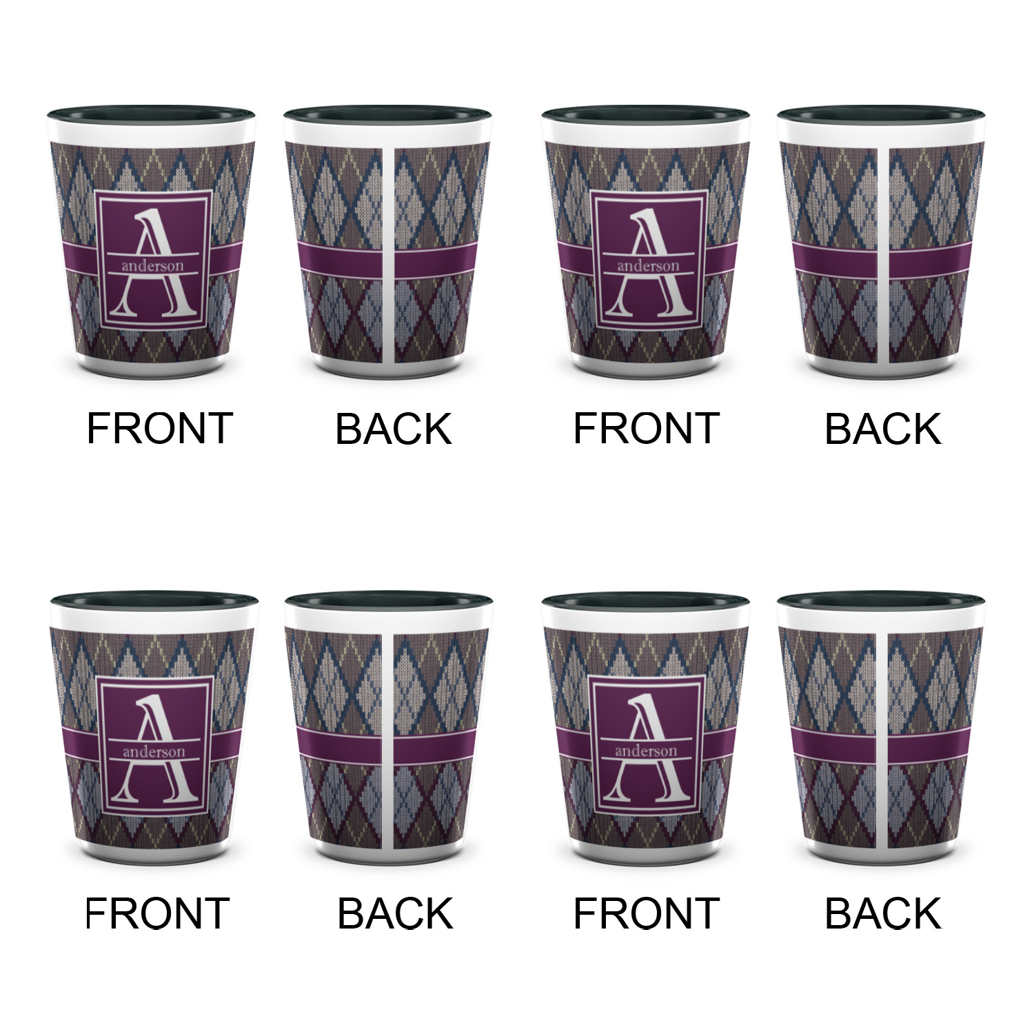 Made from ceramic these shot glasses are printed in full color with the design of your choice. These are a standard 1.5oz size and stand 2.25" tall. Available in a full white ceramic or a two-tone with a black color inside the shot glass. Buy a single or a set of 4, all of which can be designed separately to get you just what you want and need.
