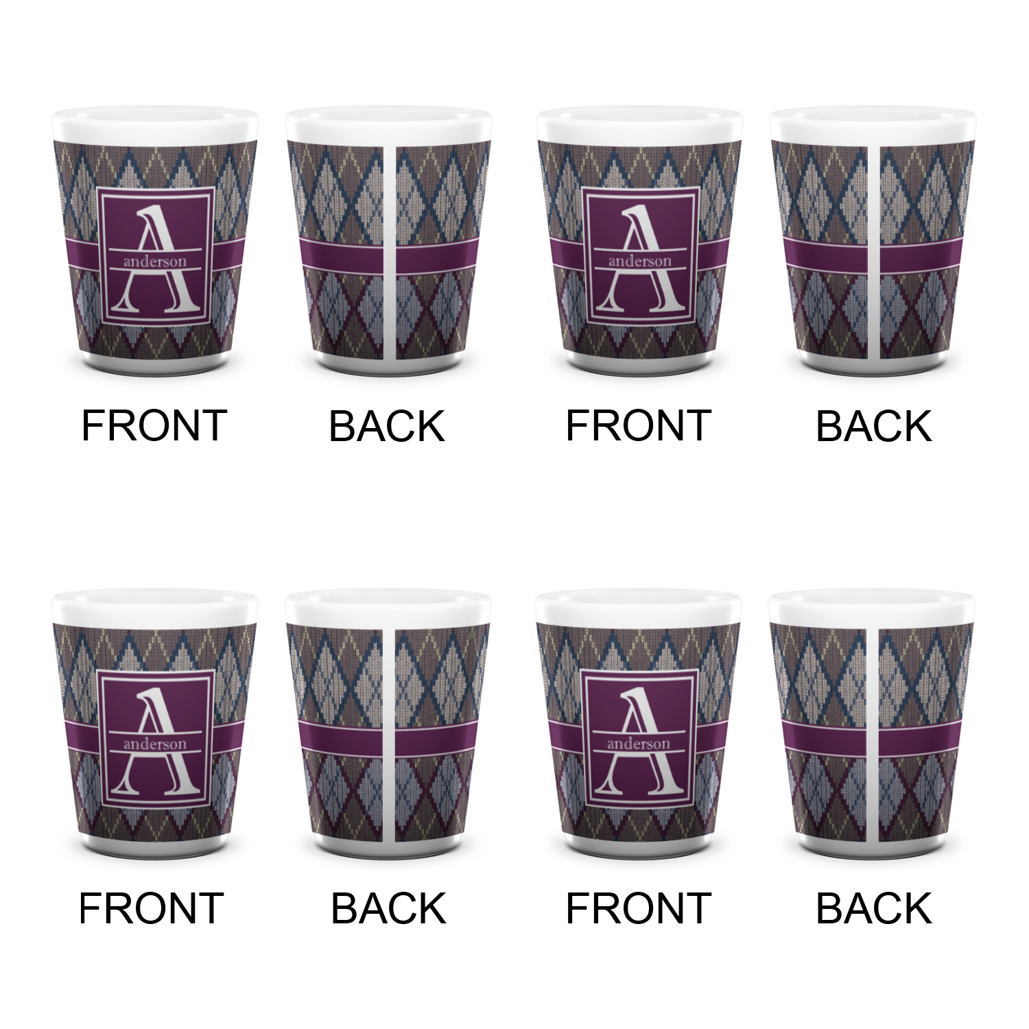 Made from ceramic these shot glasses are printed in full color with the design of your choice. These are a standard 1.5oz size and stand 2.25" tall. Available in a full white ceramic or a two-tone with a black color inside the shot glass. Buy a single or a set of 4, all of which can be designed separately to get you just what you want and need.