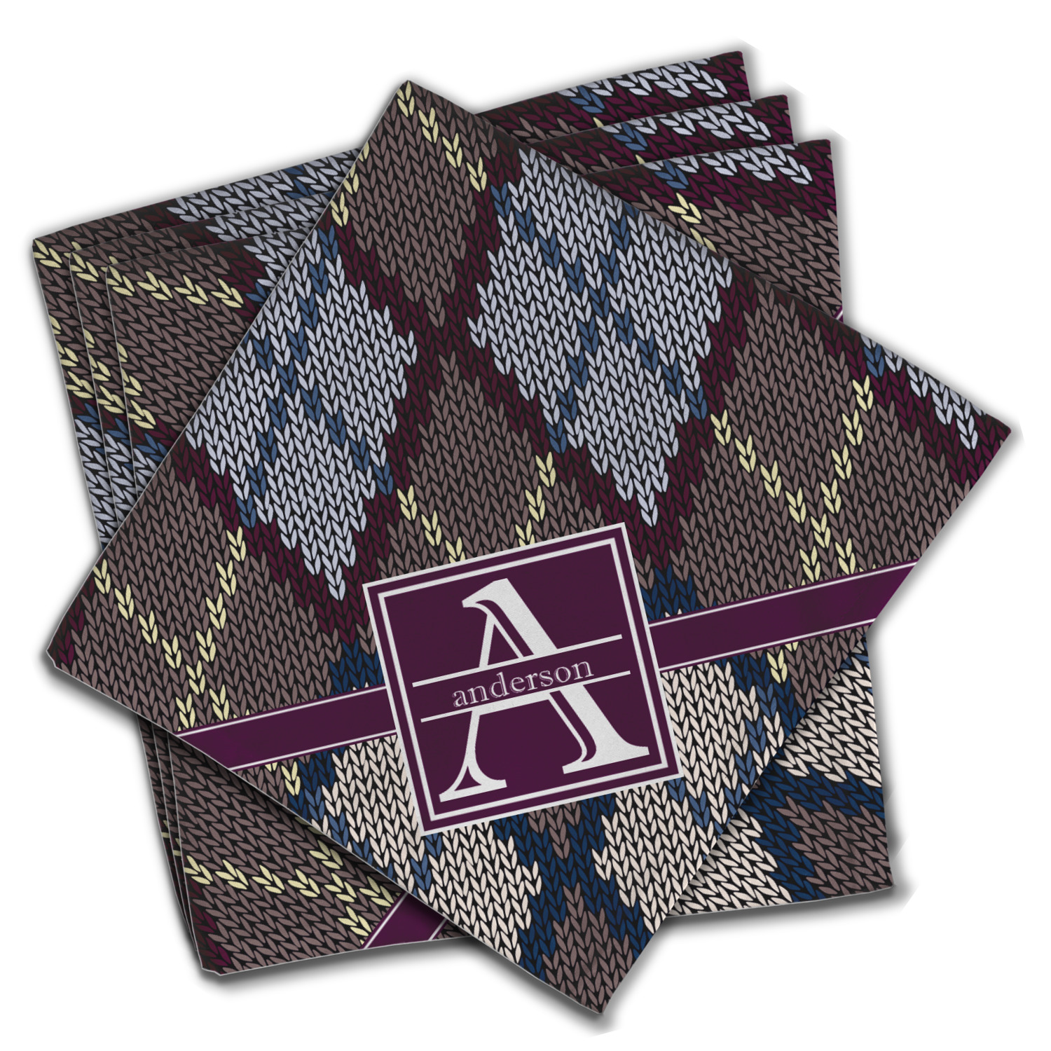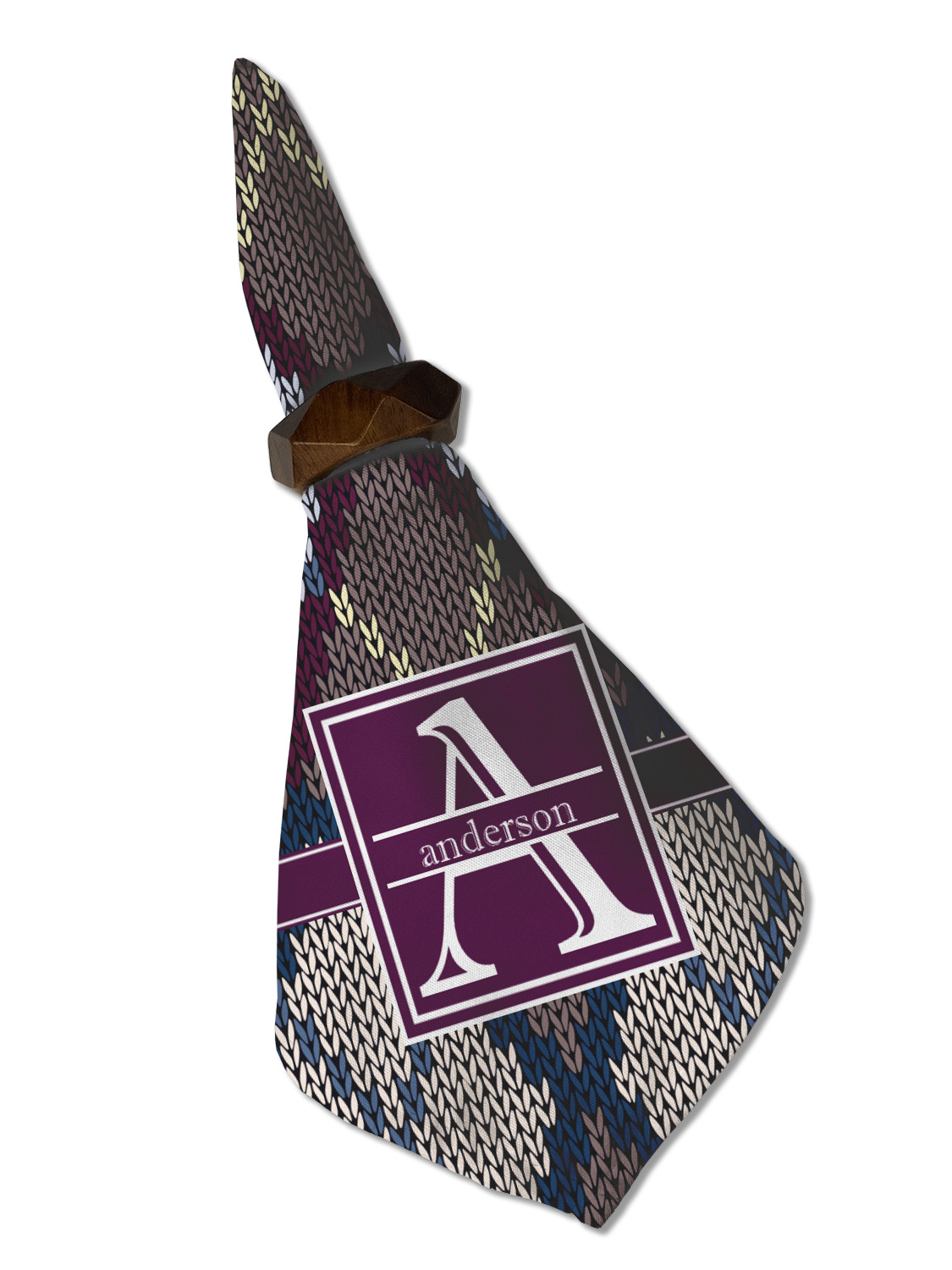 Add a cozy touch of a knit sweater to anything with our Knit Argyle design. The primary color of the design is gray with stitches of dark violet, dark blue, and cream. The design also includes a ribbon and label shown in dark violet.