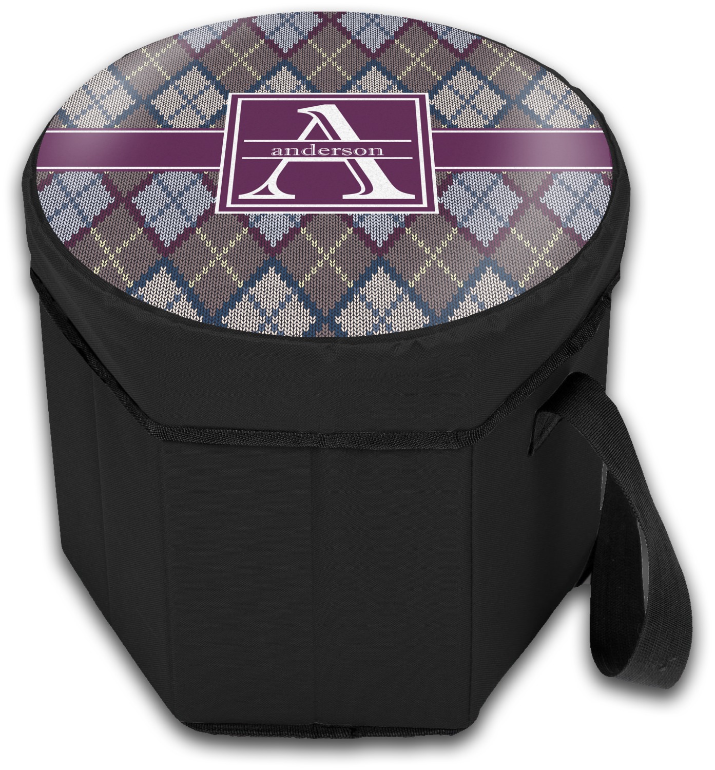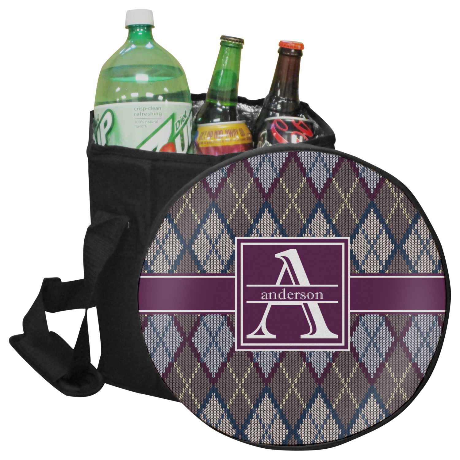Our collapsible insulated coolers feature a unique six-sided hexagon shape, are lightweight, durable and can be turned into a seat. This cooler is fully insulated with silver foil lining to keep food and drinks hot or cold, and has a 12-quart capacity. Although this cooler collapses for easy transport, hidden inside are composition panels made of sturdy wood that give the frame strength and allow this cooler to be used as a seat. Simply sit down on the personalized cover and give your legs a break! (Maximum weight capacity of 200 pounds.)