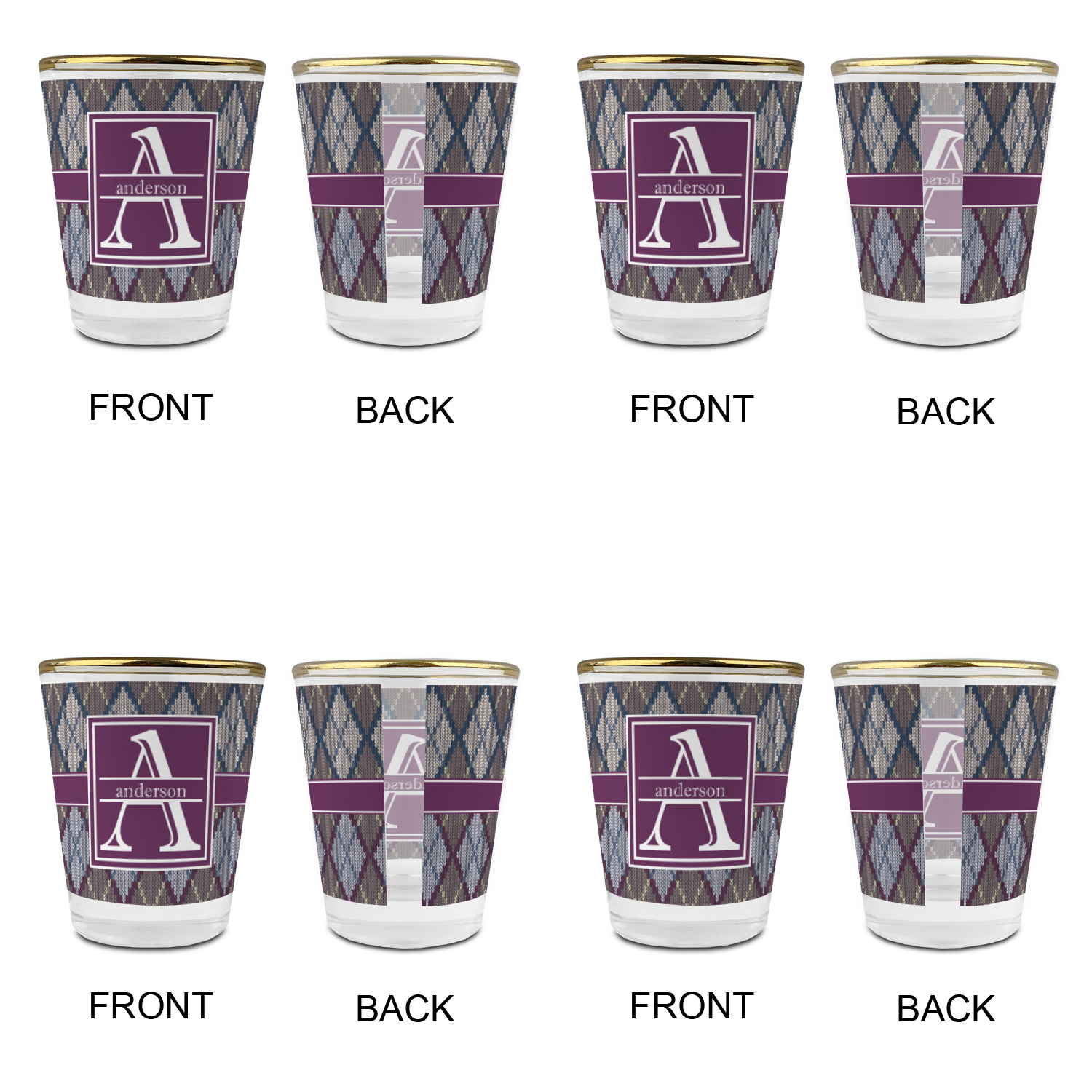 Made with frosted glass, these shot glasses are printed in full color with the design of your choice. They are a standard 1.5oz shot glass and are 2.4" tall. The print is wrapped around the shot glass in a full wrap and boldly displays your customization.