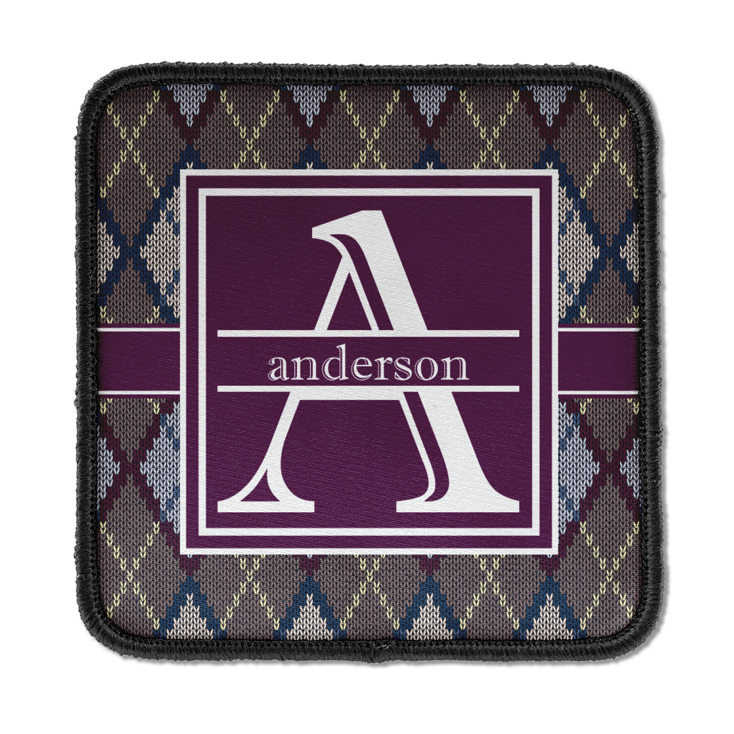 Add a cozy touch of a knit sweater to anything with our Knit Argyle design. The primary color of the design is gray with stitches of dark violet, dark blue, and cream. The design also includes a ribbon and label shown in dark violet.
