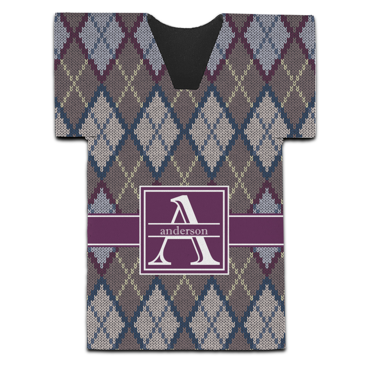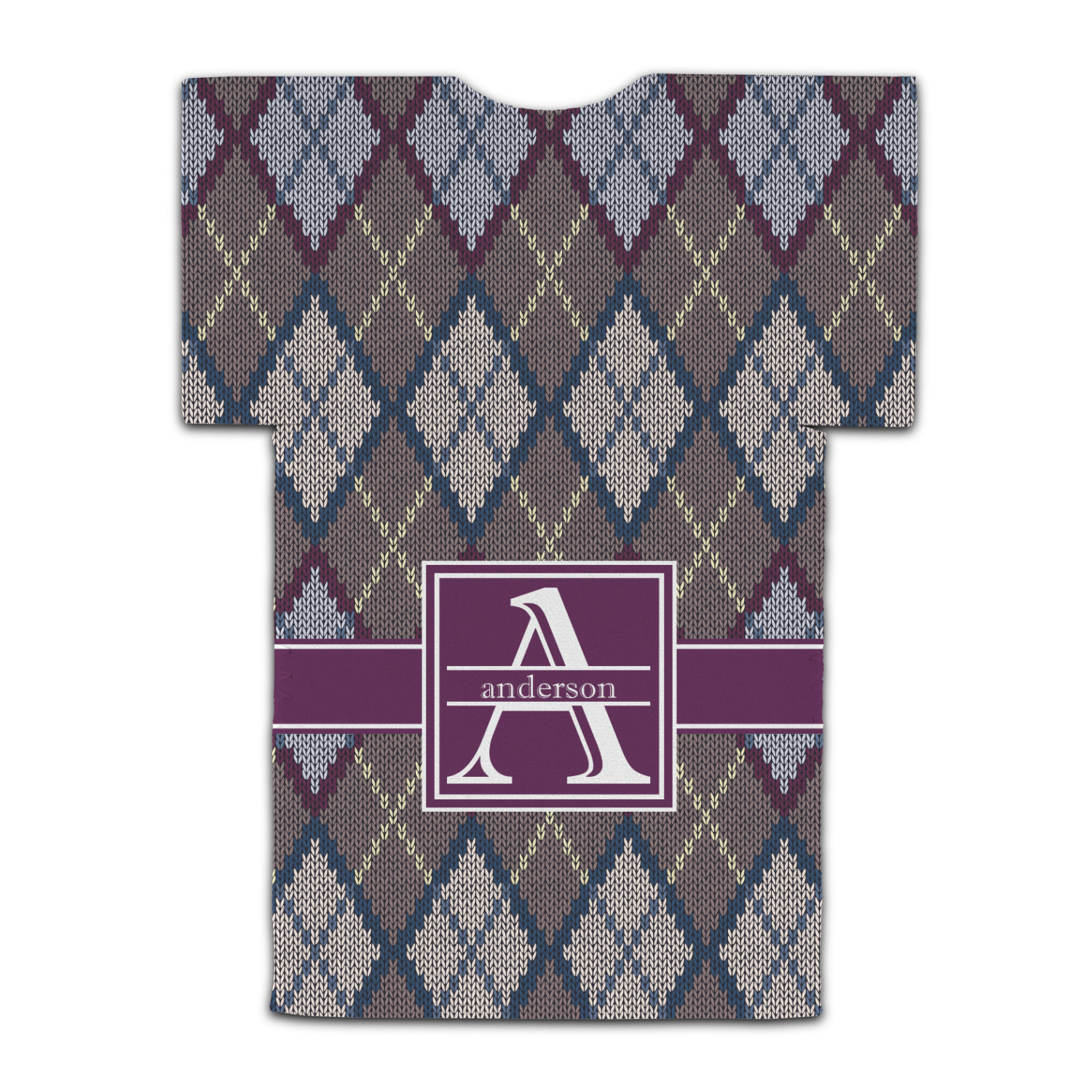 Add a cozy touch of a knit sweater to anything with our Knit Argyle design. The primary color of the design is gray with stitches of dark violet, dark blue, and cream. The design also includes a ribbon and label shown in dark violet.