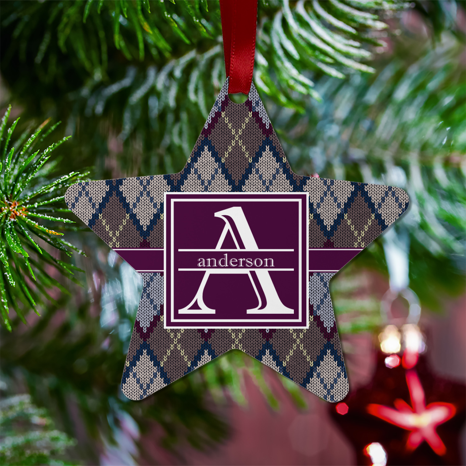 Add a cozy touch of a knit sweater to anything with our Knit Argyle design. The primary color of the design is gray with stitches of dark violet, dark blue, and cream. The design also includes a ribbon and label shown in dark violet.