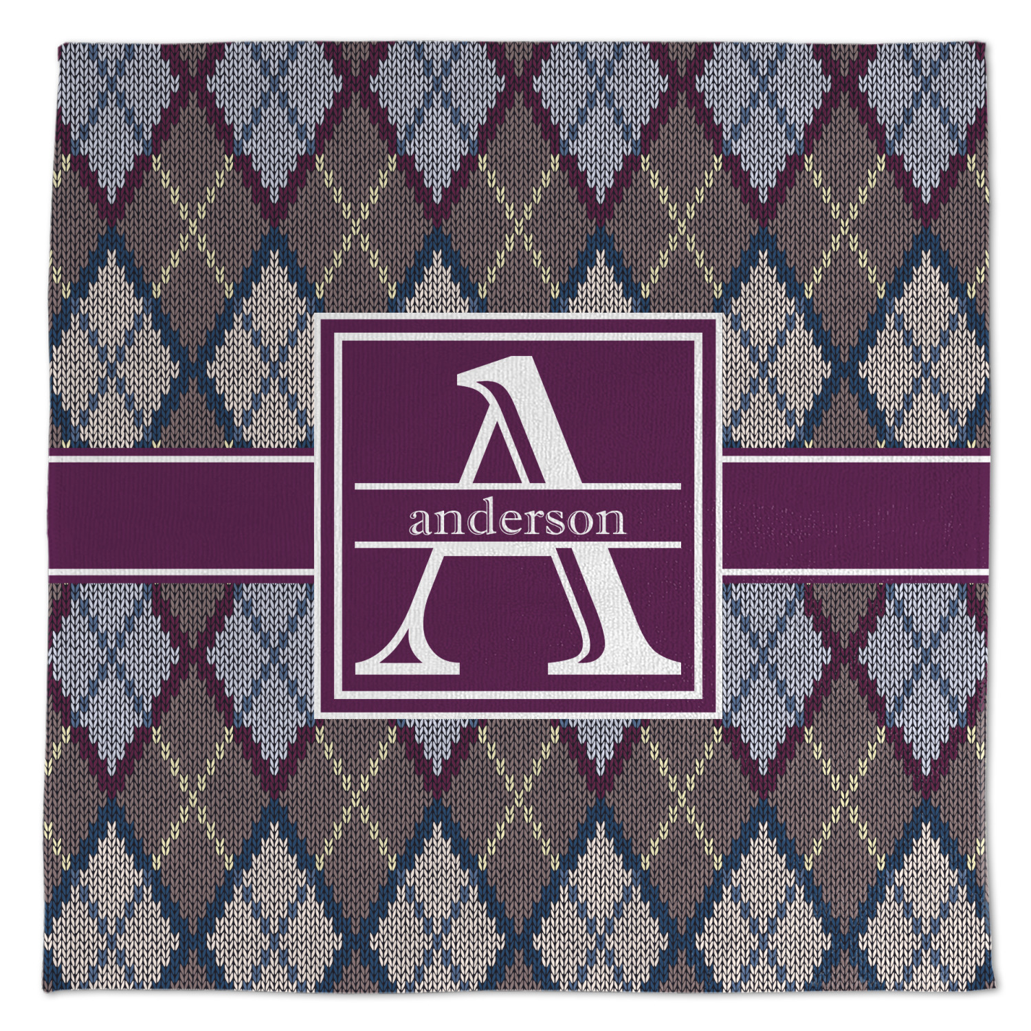 Add a cozy touch of a knit sweater to anything with our Knit Argyle design. The primary color of the design is gray with stitches of dark violet, dark blue, and cream. The design also includes a ribbon and label shown in dark violet.