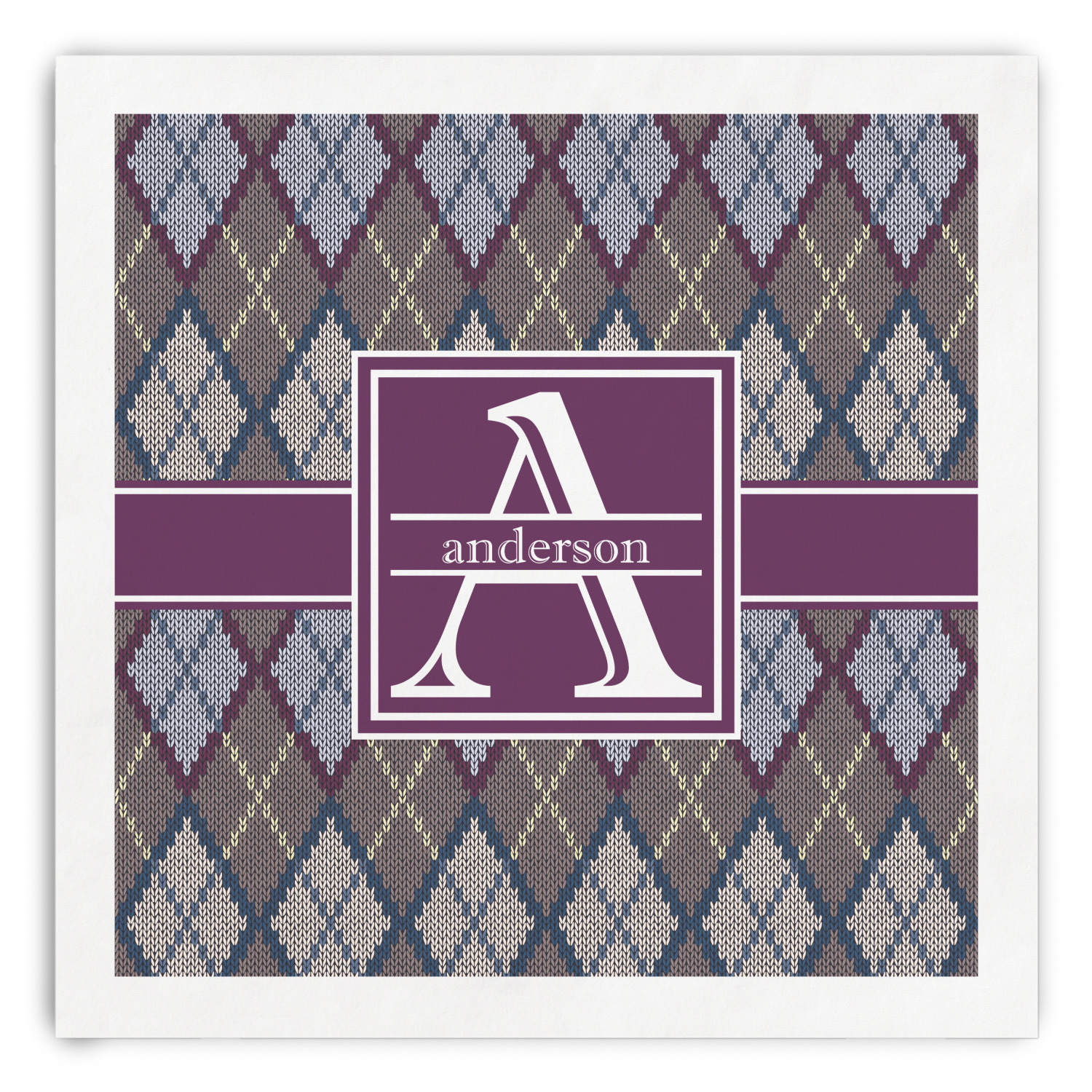 Add a cozy touch of a knit sweater to anything with our Knit Argyle design. The primary color of the design is gray with stitches of dark violet, dark blue, and cream. The design also includes a ribbon and label shown in dark violet.